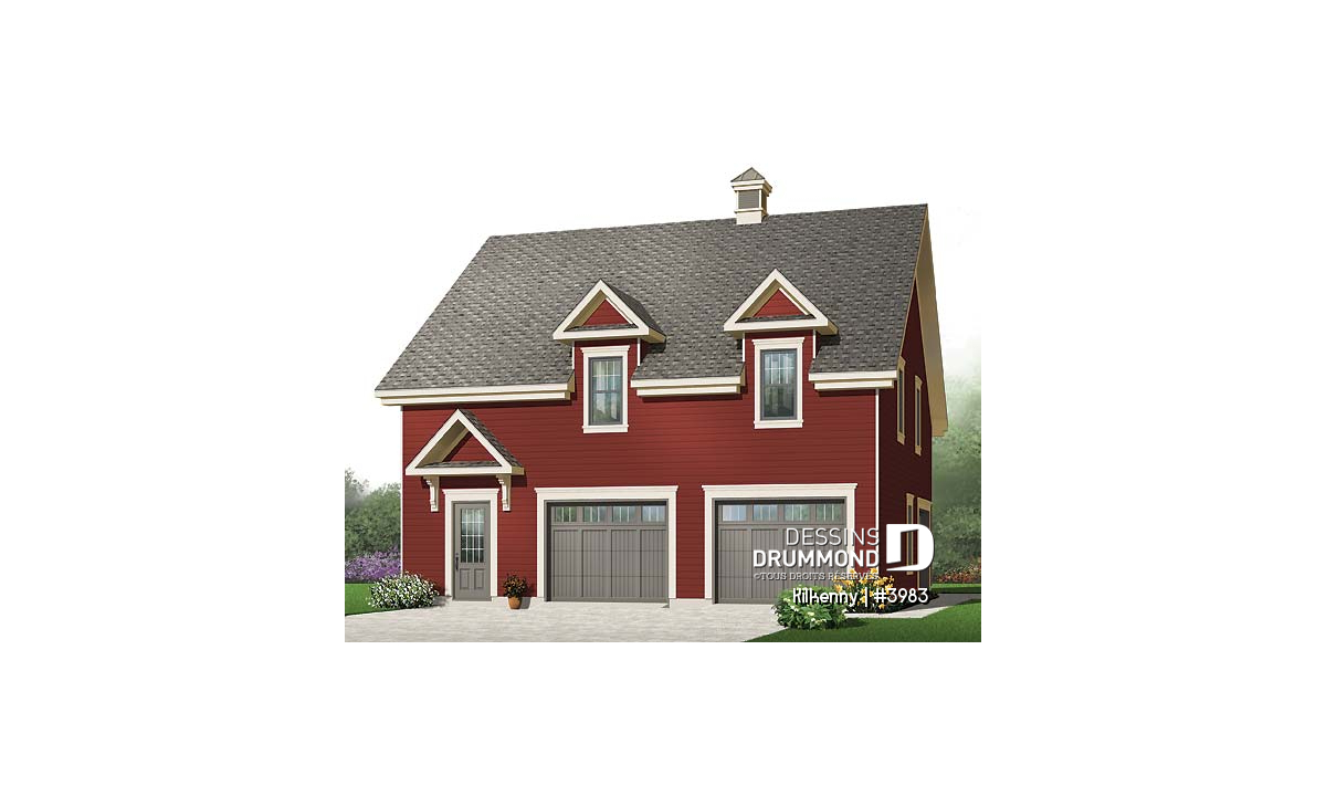 Le plan Kilkenny (#3983) propose un garage triple de style champêtre qui se démarque par sa conception généreuse et son remarquable potentiel d’aménagement. Son architecture soignée, rehaussée de deux élégantes lucarnes, lui permet de s’harmoniser facilement avec une grande variété de résidences, qu’elles soient traditionnelles, contemporaines ou d’inspiration rurale.