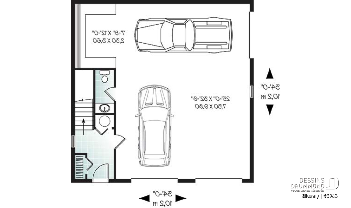 Avec son format équilibré de 34 pi x 34 pi, ses plafonds de 8 pieds et sa fondation sur dalle flottante, ce plan offre une solution à la fois pratique, durable et économique. Bien plus qu’un simple garage, le Kilkenny (#3983) représente une véritable extension fonctionnelle de la maison, conçue pour évoluer avec le mode de vie des occupants.