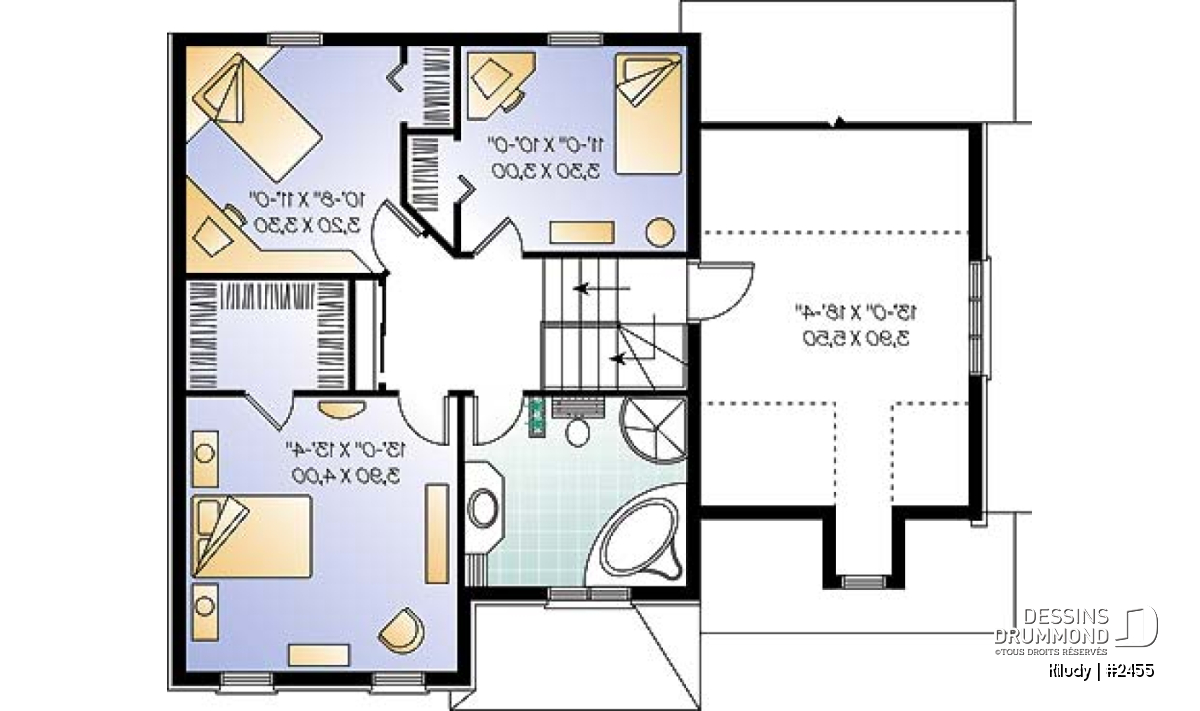 Étage - Maison style européenne, espace boni au-dessus du garage, 3 chambres, vestibule, grande salle bain - Kiludy