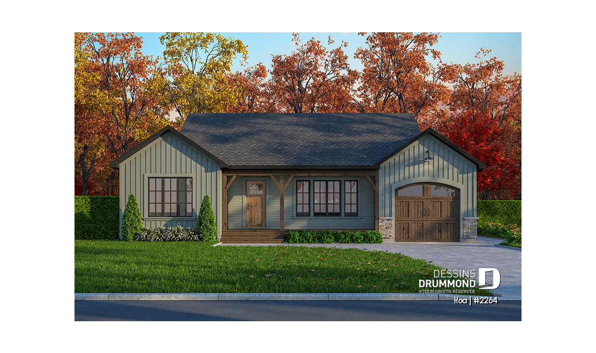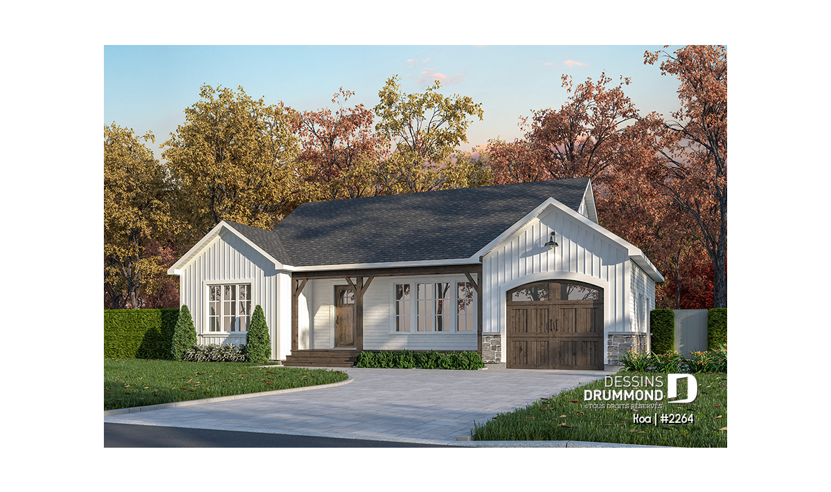 Ce plain-pied au style farmhouse champêtre se distingue par son allure à la fois simple, chaleureuse et intemporelle. Conçu pour offrir un maximum de confort dans un format compact, il séduit par ses espaces bien pensés et sa grande convivialité. Sa façade au charme rustique, son revêtement aux teintes naturelles et son grand balcon avant abrité ajoutent une touche accueillante dès le premier regard. Cet espace extérieur couvert devient un lieu privilégié pour profiter des saisons, prendre un café le matin ou simplement admirer le paysage.