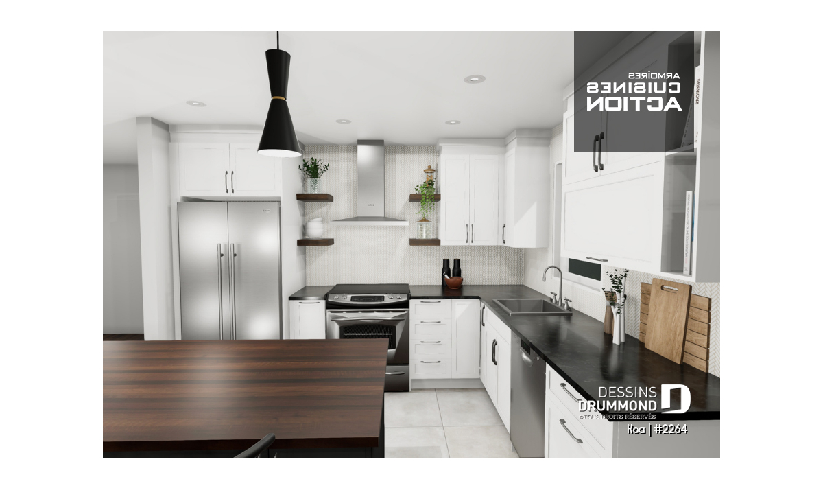Comptoir-lunch, Garde-manger, Ilôt, Banquette, Aire ouverte, Lavabo double, Entrepreneur, Auto-Construction