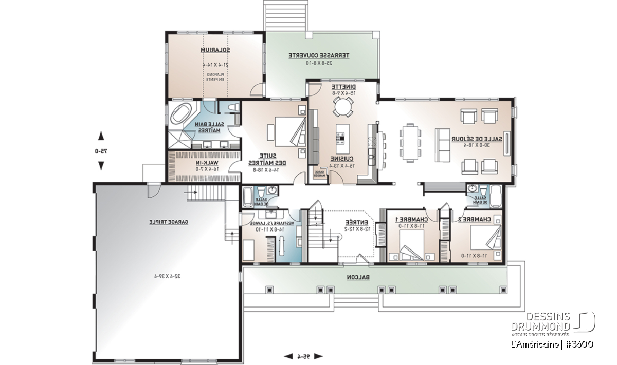 Plafond cathédrale, Mezzanine, Garage latéral, Salle de lavage au rez-de-chaussée, Bureau / Salle étude, Garde-manger, Ilôt, Plafond à plus de 8', Suite d'invités, Terrasse abritée, Solarium, Dinette / Coin déjeuner, Accès au sous-sol du garage, Librairie, Bain et douche séparés, Suite des maîtres au rdc, Chambres séparées
