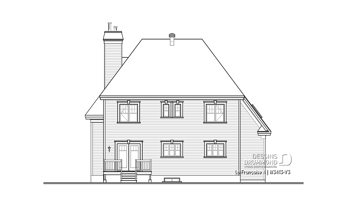 Réalisé à partir du plan similaire 3413-V2, ce plan 3413-V3 se veut encore plus imposant avec son garage double et d’autant plus confortable avec l’addition d’une 4è chambre à l’étage dont une suite des maîtres remarquable aménagée au-dessus du garage. Entrons donc sans plus tarder!