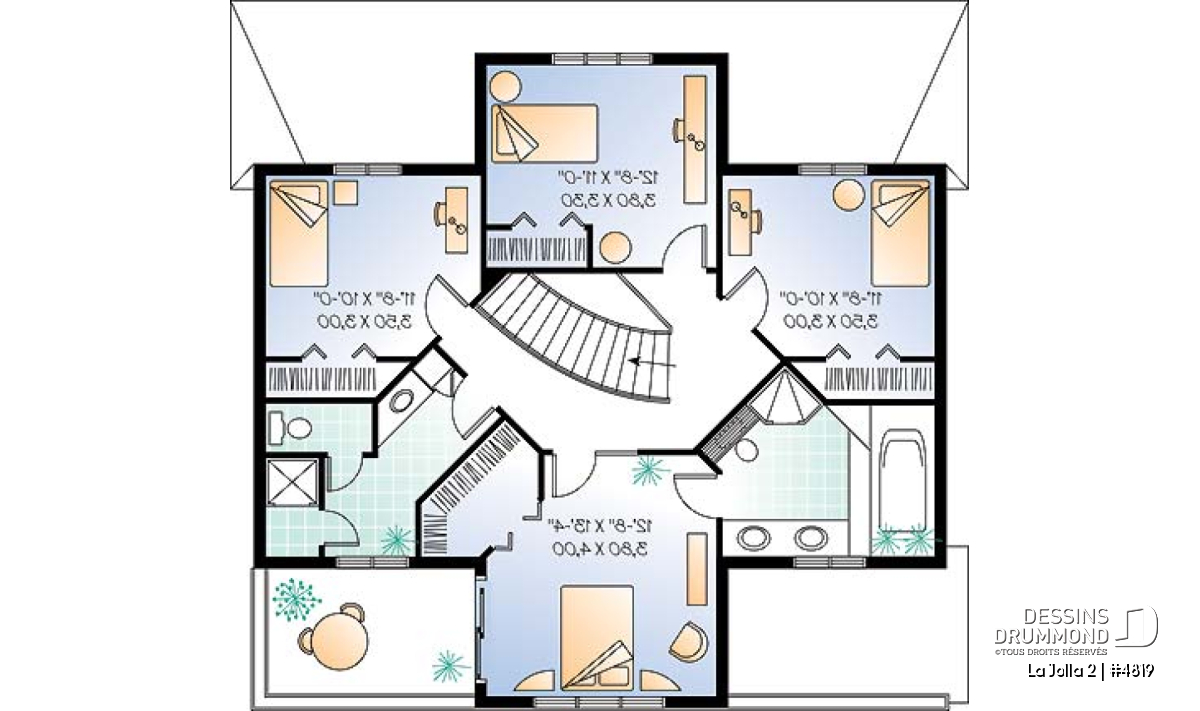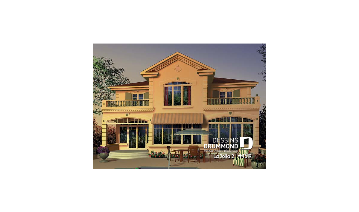 Étage - Plan de maison style Floride, 4 grandes chambres, solarium, plafond 9', 2 balcons, garage - La Jolla 2