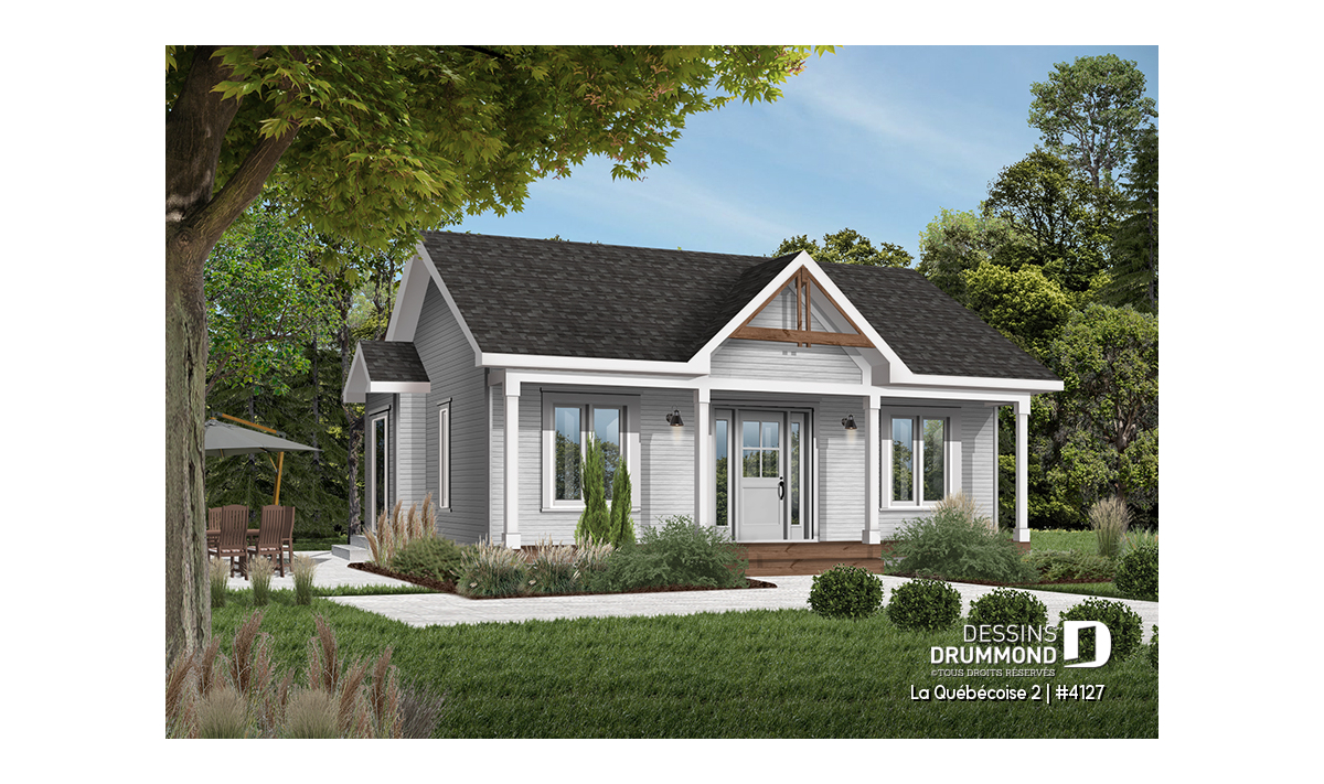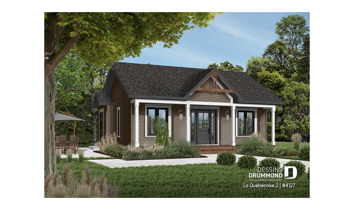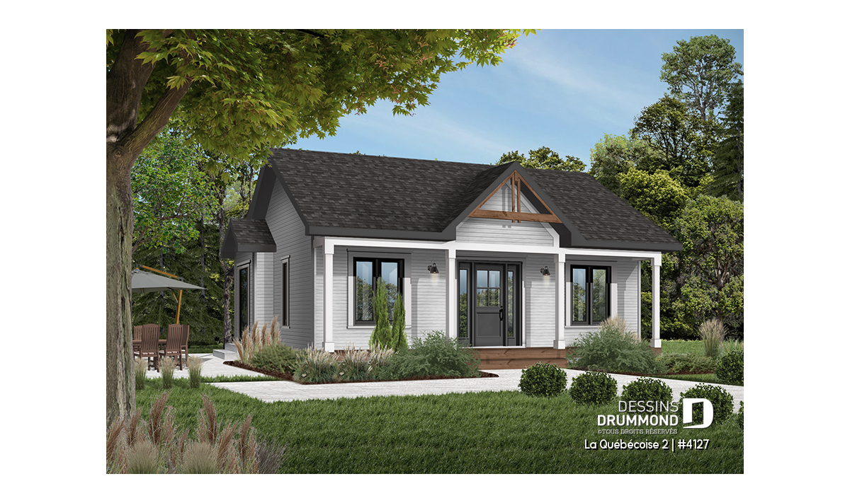 Modèle de Plain-pied de 2 chambres, abordable, entrée abritée, belle cuisine, sous-sol à aménager