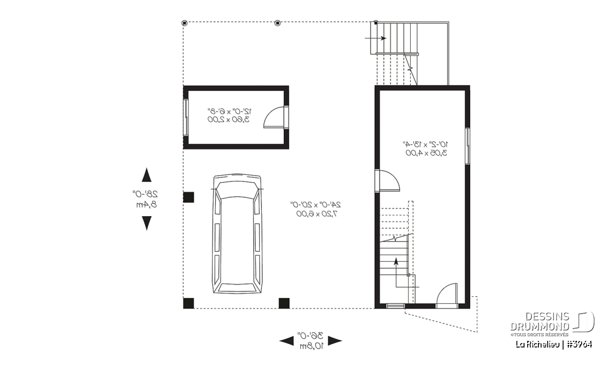 | Largeur | 36'0" | Profondeur | 28'0" |