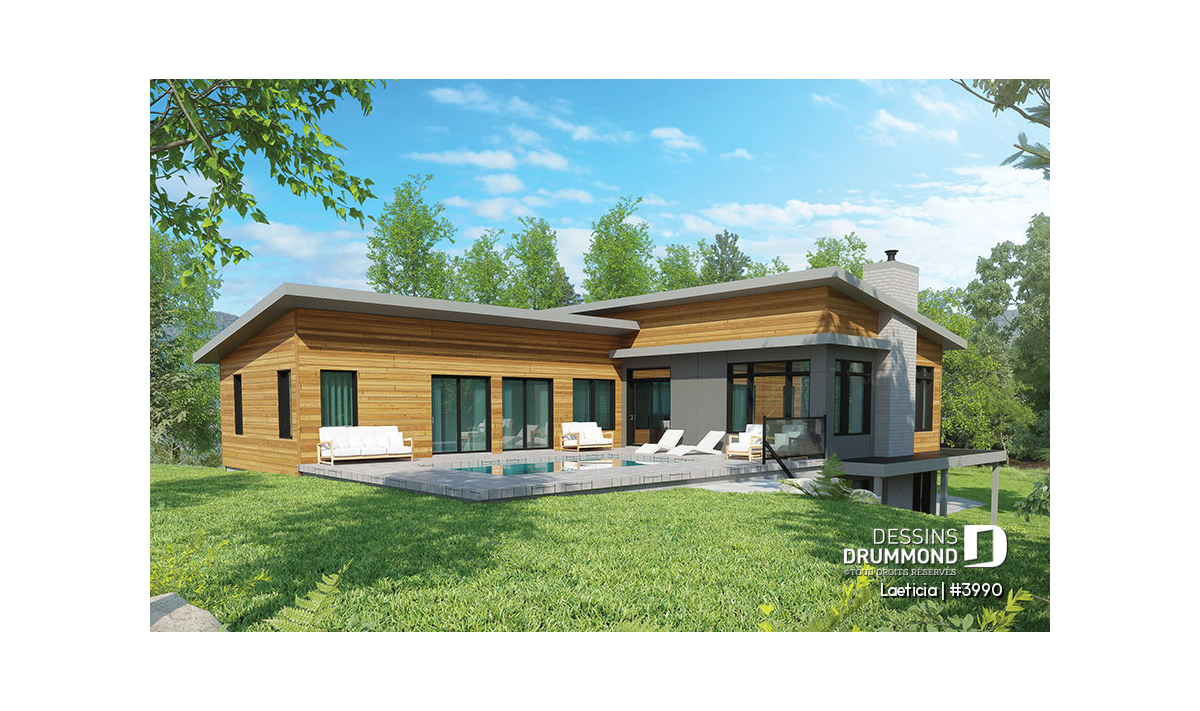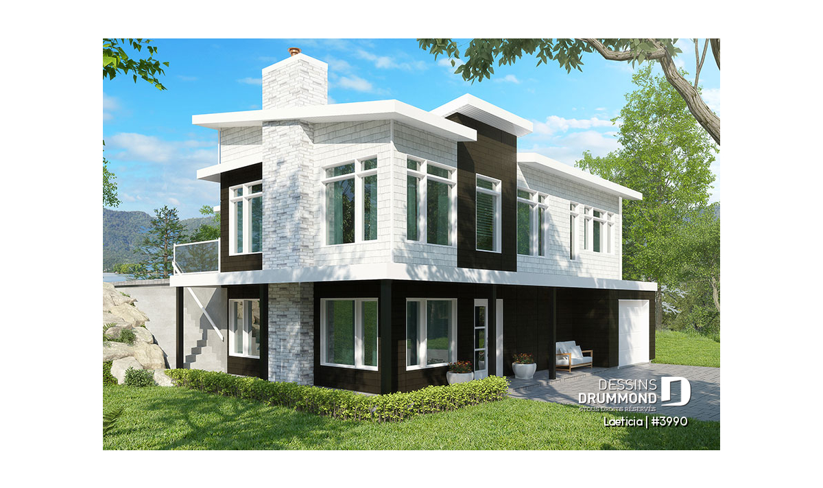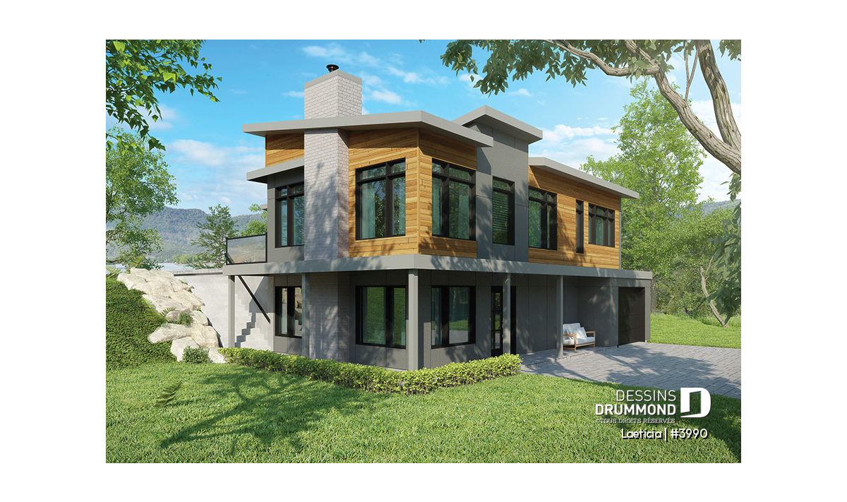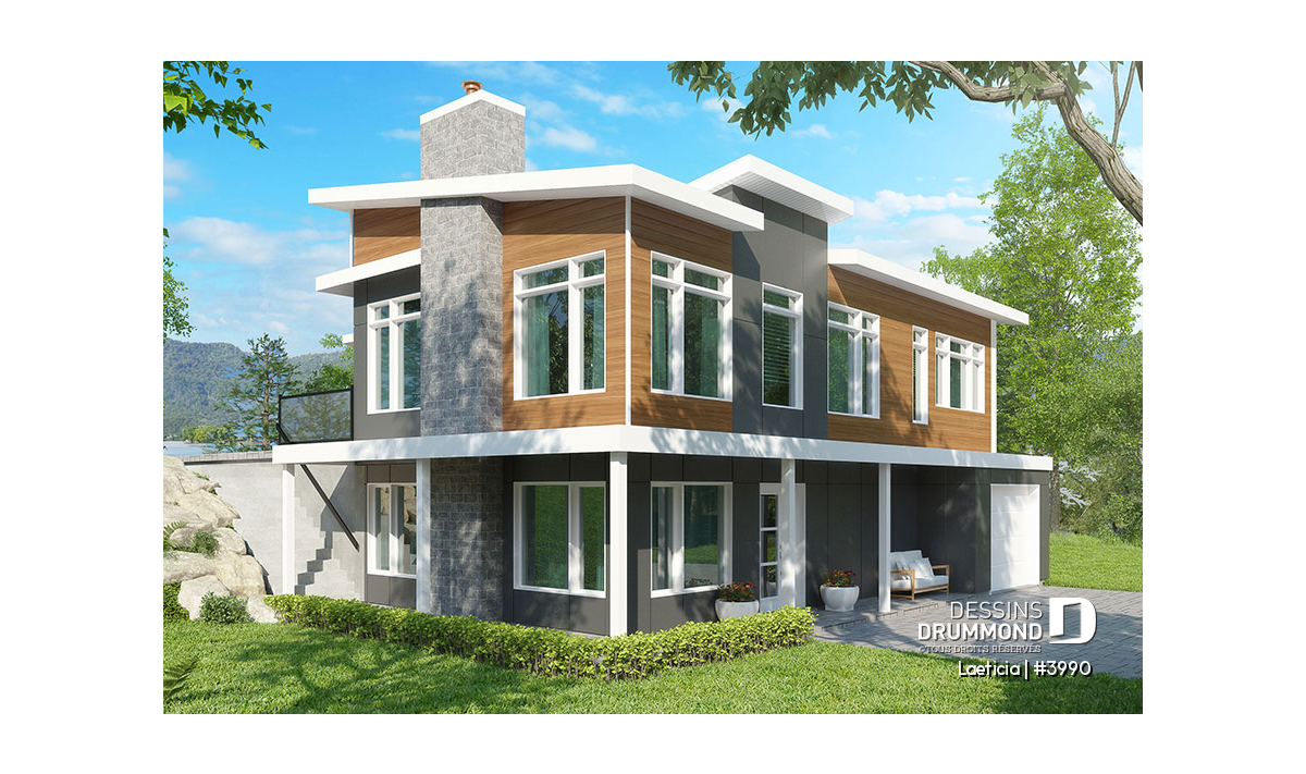 Maison genre chalet contemporain, avec l'espace habitable à l'étage (maison principale).