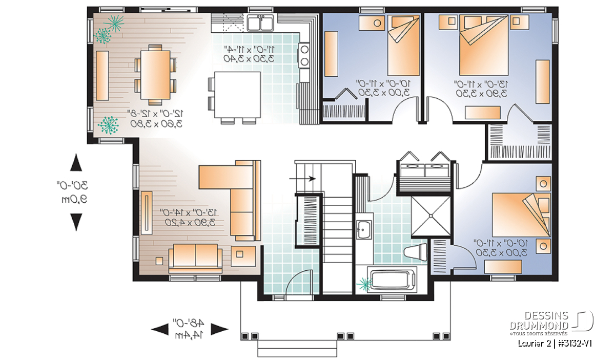 | Largeur | 48'0" | Profondeur | 30'0" |