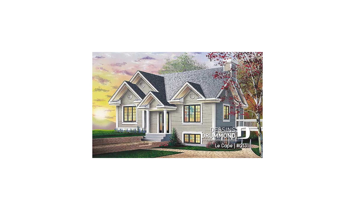 En proposant une entrée split et un accès direct au sous-sol, ce modèle, plan # 2131 aussi nommé Le Cape, s’apparente davantage à une maison à étage qu’à une maison de plain-pied. En effet, sa fenestration abondante, sa grande terrasse à l’arrière et son look ressorti de terre en font une maison très lumineuse et d’une certaine envergure.