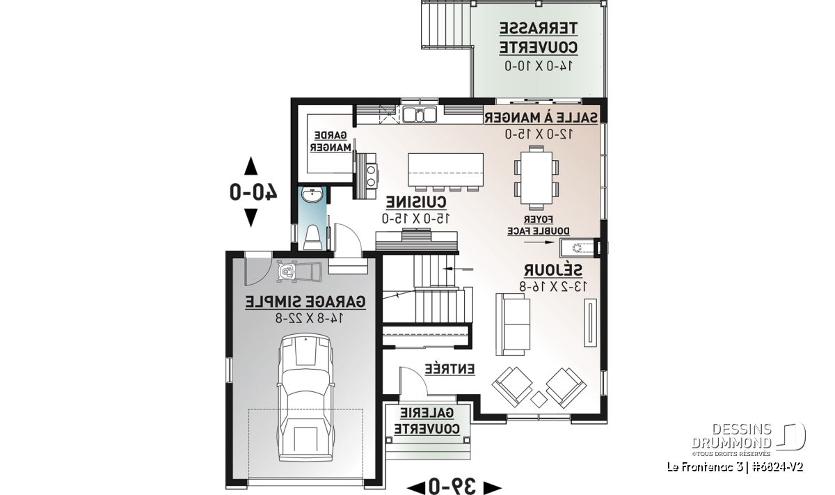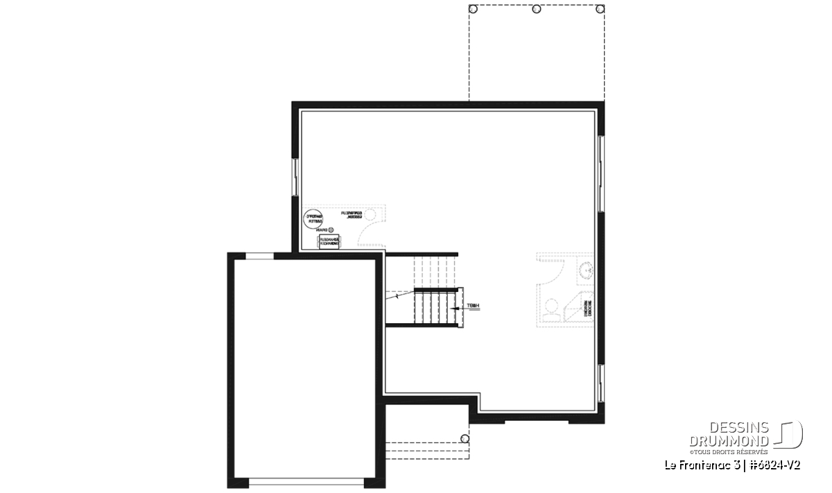 Garage une voiture. Voir le plan no. 6824-V1 si vous souhaitez un garage double.