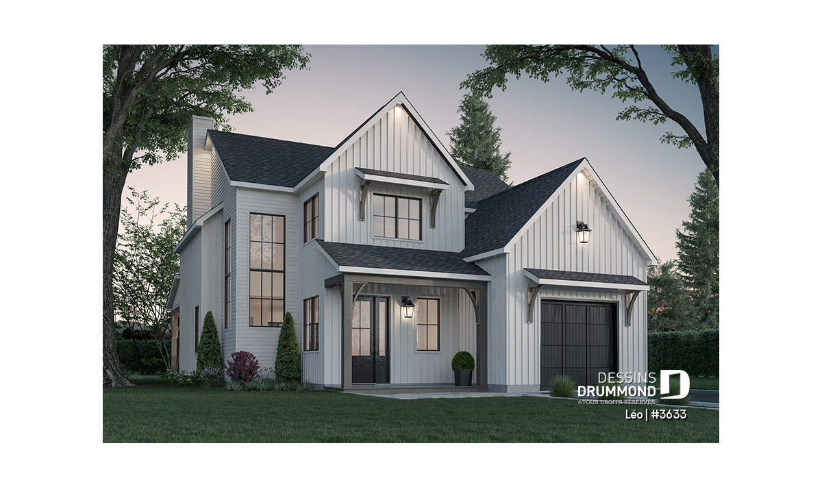 Vue avant - MODÈLE DE BASE - Farmhouse 3 chambres avec garage, vestiaire, garde-manger et bureau - Léo