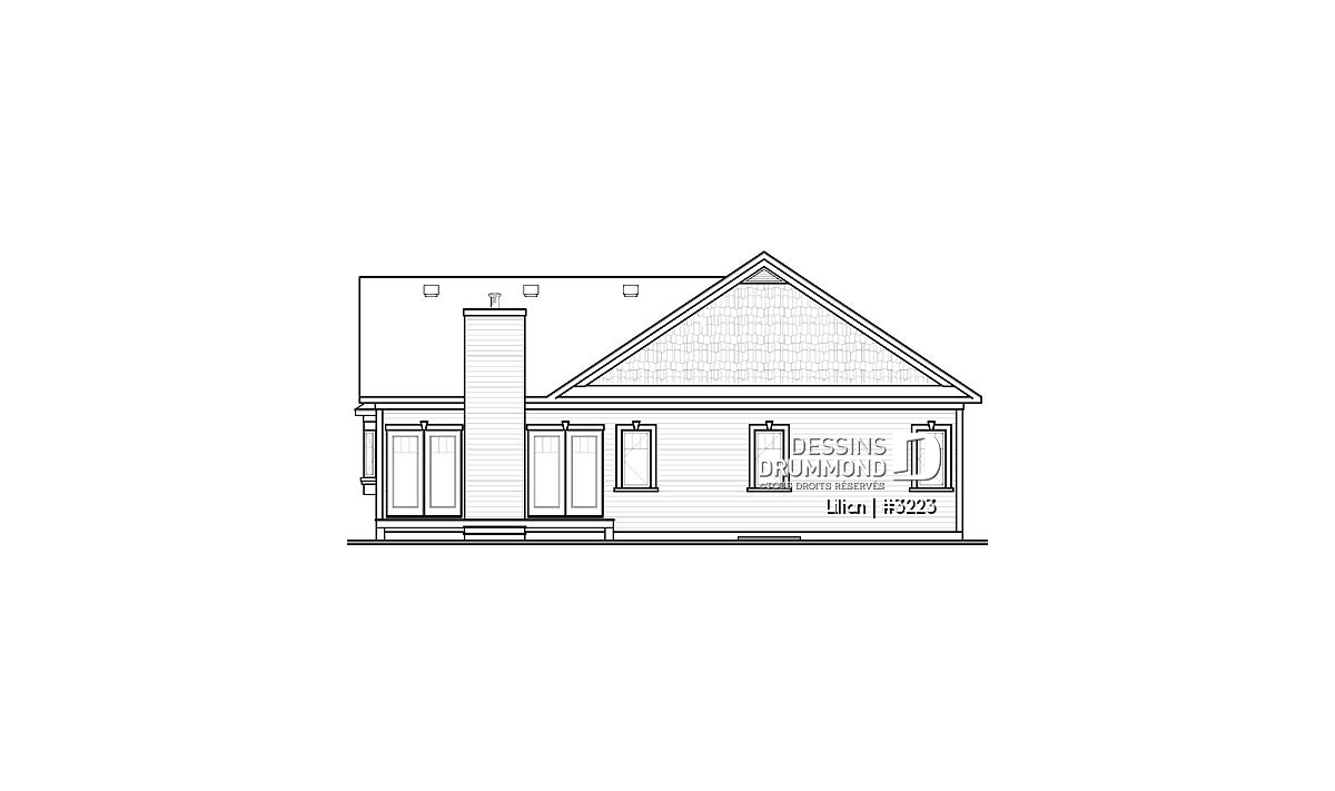 Version couleur no. 5 - Vue avant - Plan de plain-pied avec garage double, 3 chambres et salles de bain.  Salle à manger fermée et foyer. - Lilian
