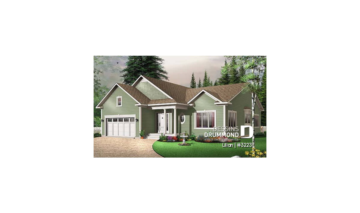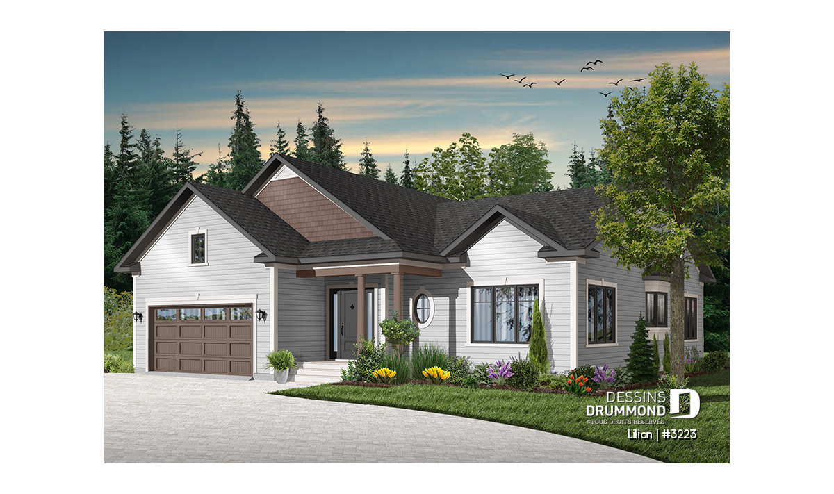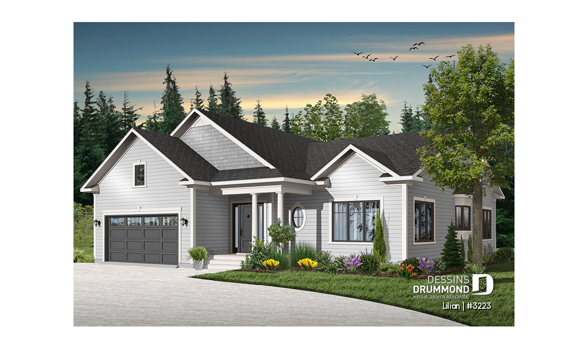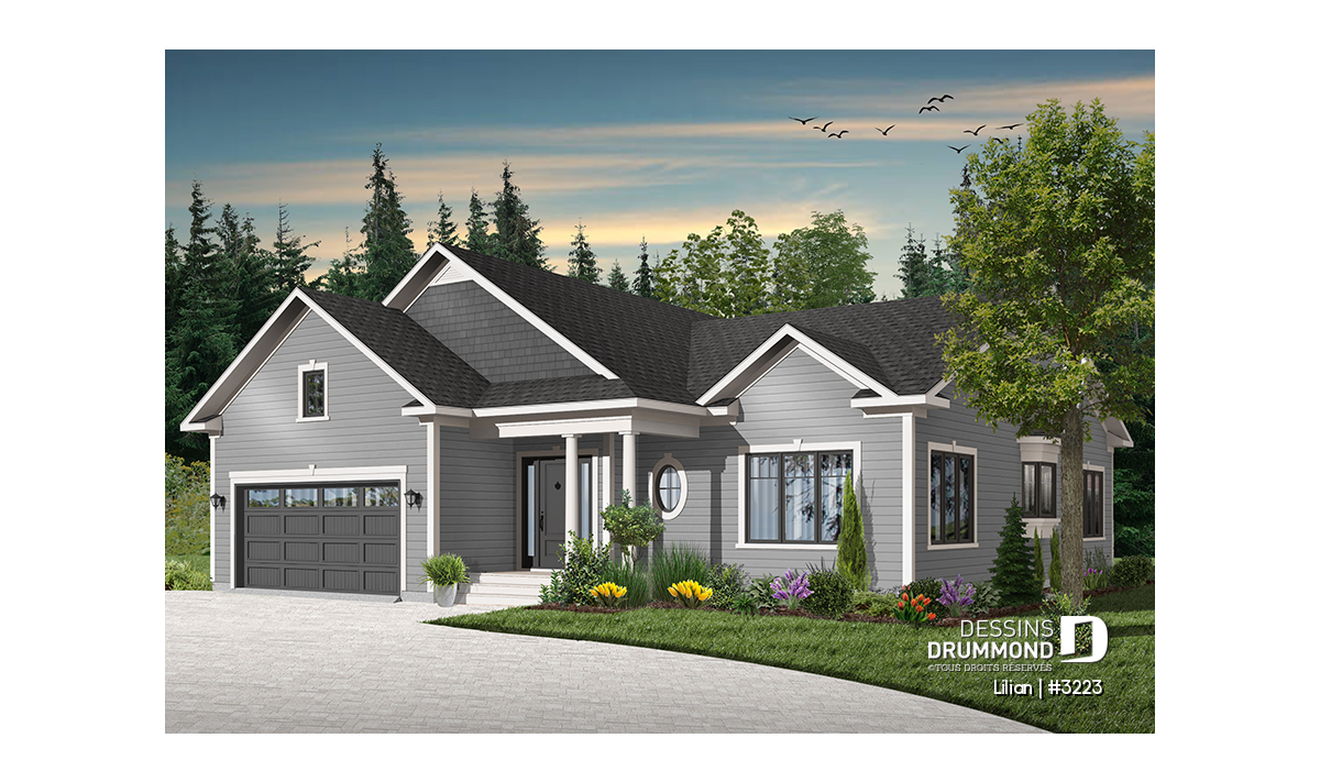 Superbe plan de plain-pied avec garage double, 3 chambres et 2 salles de bain