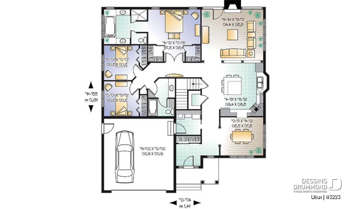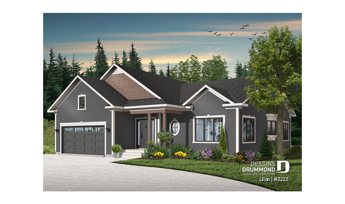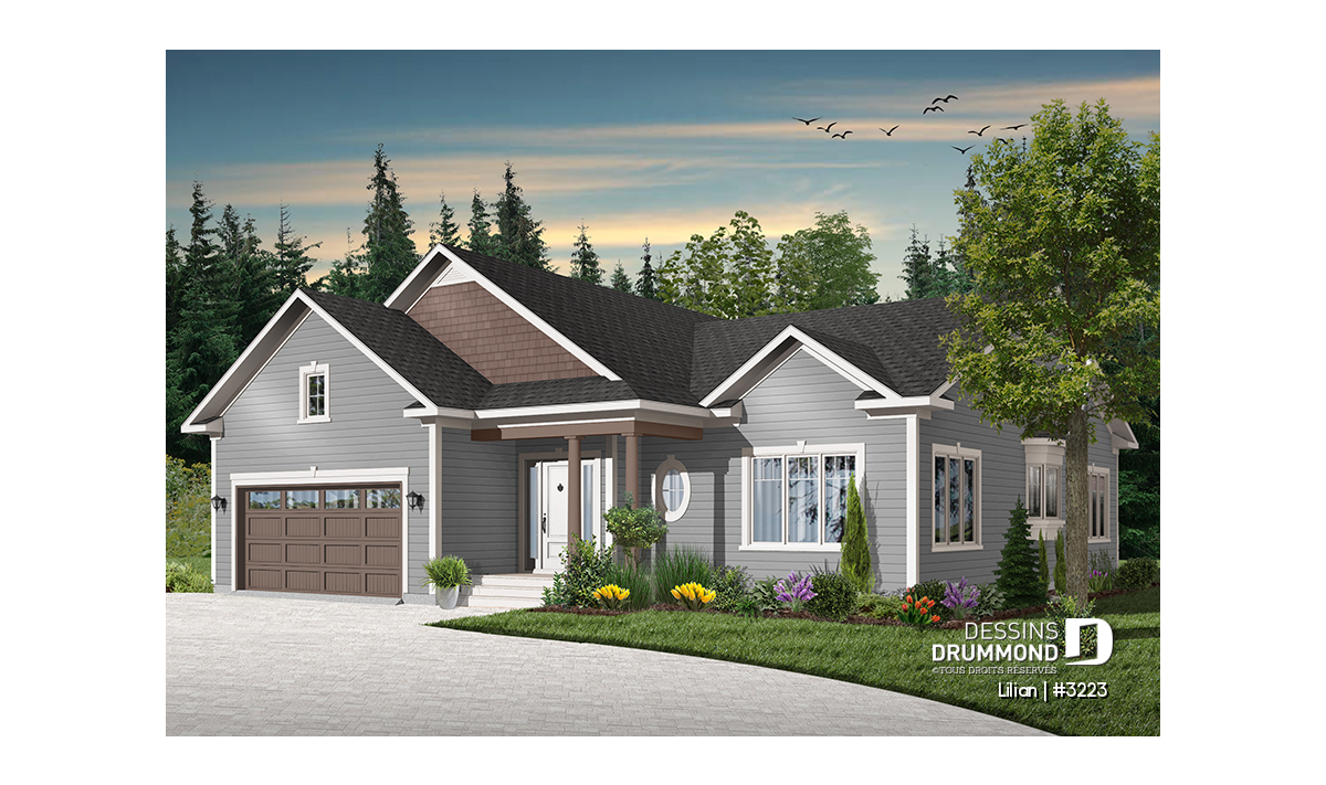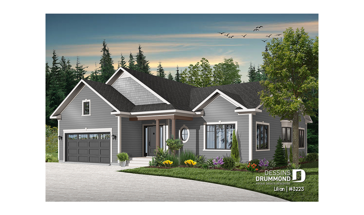 Superbe plan de plain-pied avec garage double, 3 chambres et 2 salles de bain