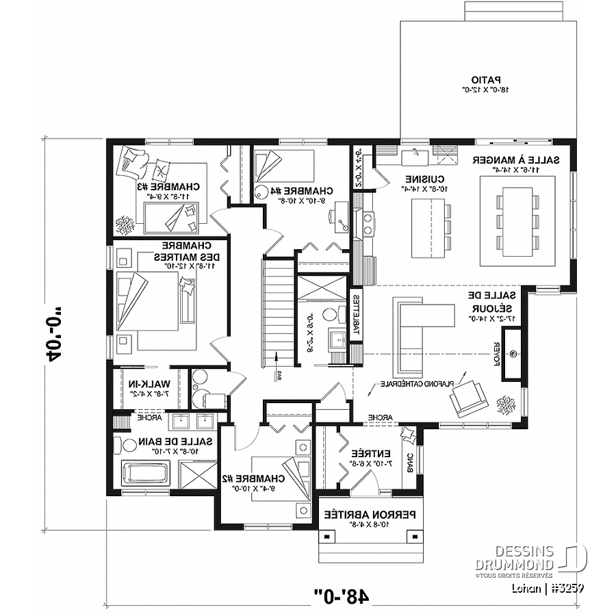Tous les plans de Dessins Drummond ne peuvent être modifiés que par Dessins Drummond et ses agences reconnues; si vous faites modifier votre plan par une autre entreprise ou personne que Dessins Drummond, assurez-vous que cette entreprise ou personne détient une licence pour la modification de ce plan sinon, vous êtes passible de poursuite judiciaire au même titre que l'entreprise ou la personne avec qui vous avez fait affaires pour la modification ou la reproduction du plan.