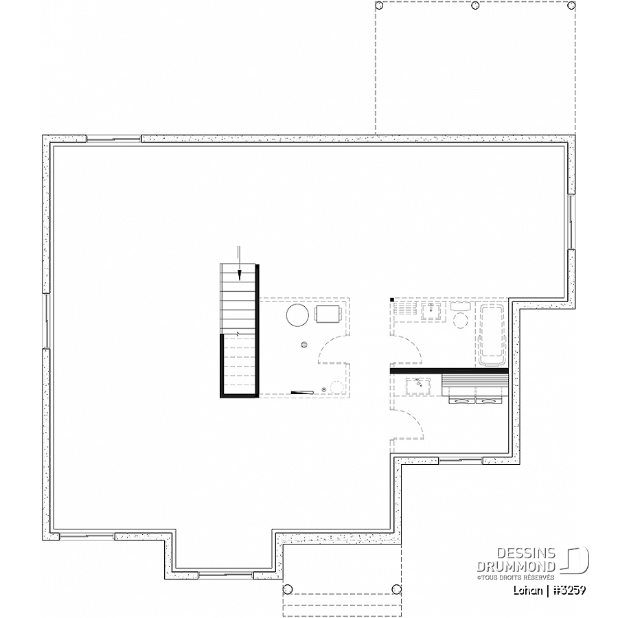 La fondation précisée à cette ligne est incluse dans le plan que vous recevrez, dans le prix du plan ainsi que dans l'estimation du coût de construction SAUF dans le cas d'un sous-sol aménagé. La finition d'un sous-sol aménagé n'est JAMAIS incluse dans notre estimation sauf si avis contraire précisé dans la description du plan et/ou dans la section élément distinctif, sur la page du plan. Un sous-sol aménageable est un sous-sol non-fini, à finir plus tard, selon vos besoins.