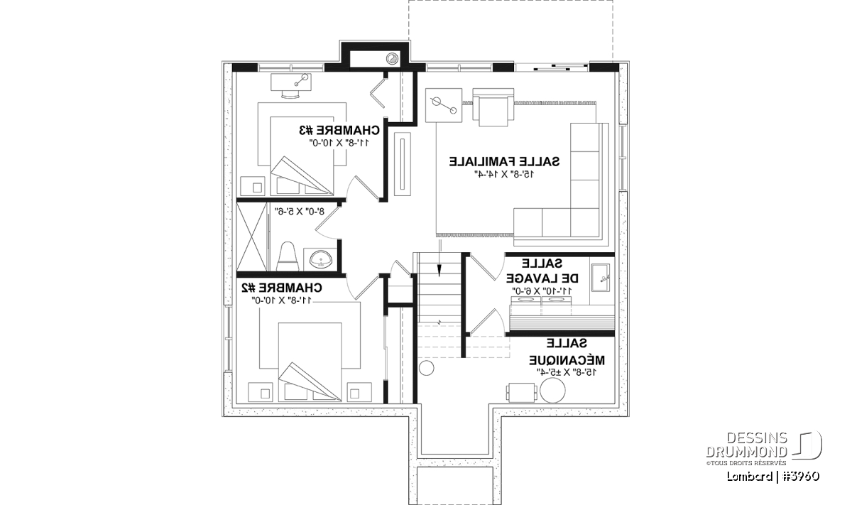 Sur ce plancher, on retrouve également la salle de lavage, du rangement sous l'escalier et une salle mécanique.