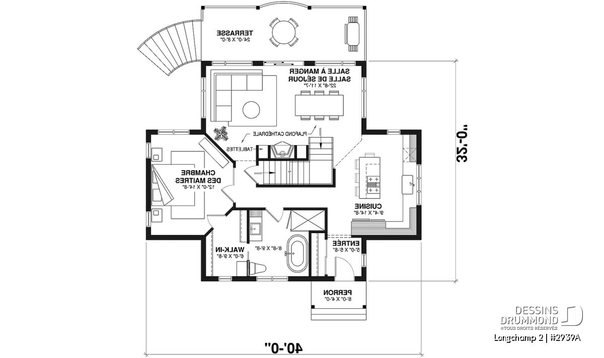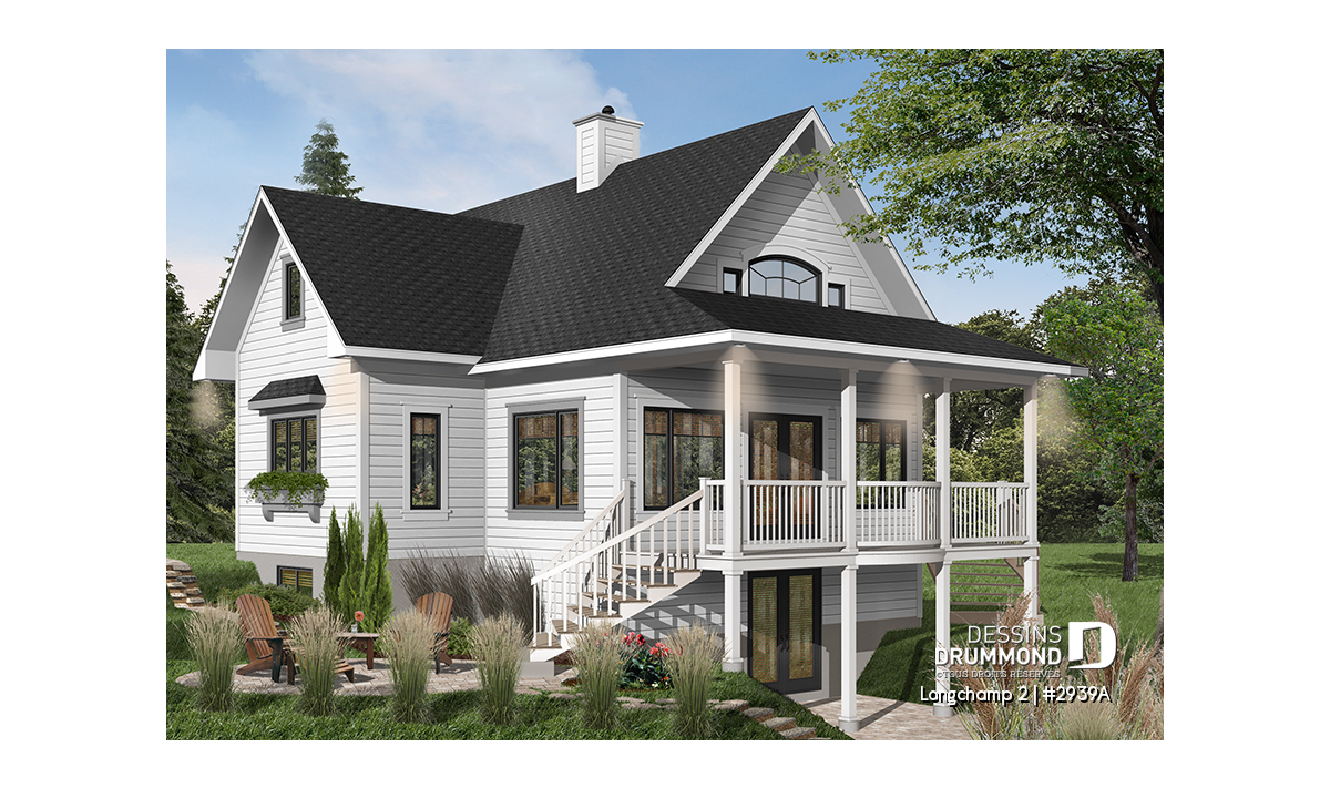 À l’intérieur, que l’on soit dans la cuisine, la salle à manger, la salle de séjour ou la chambre des maîtres, on peut facilement observer ce panorama de tout le rez-de-chaussée. Ce sont là de bien beaux espaces intérieurs et tous offrent une particularité. Cuisine attrayante avec îlot central, fenestration abondante et foyer mitoyen à la salle de séjour et la salle à manger, belle chambre des maîtres avec grande garde-robe et accès discret à la salle de bain complète.