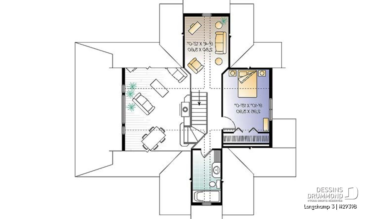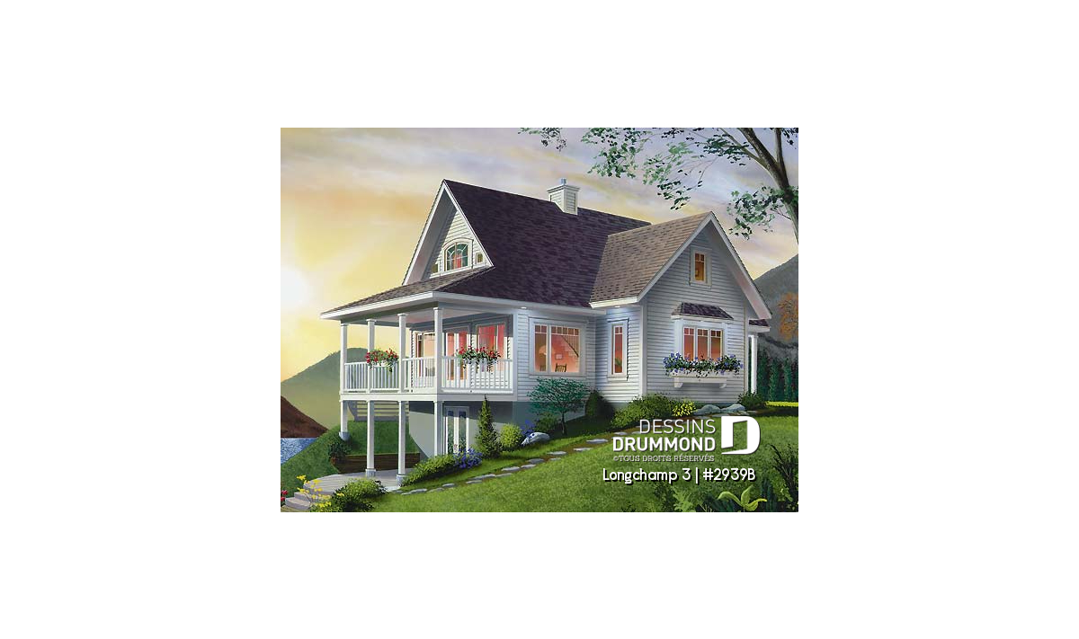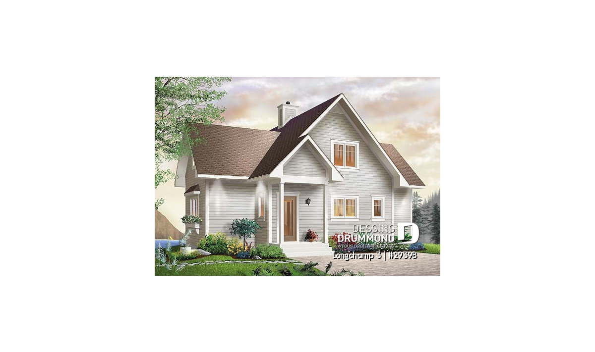 Plan de maison genre chalet, offrant beaucoup de belle lumière naturelle.