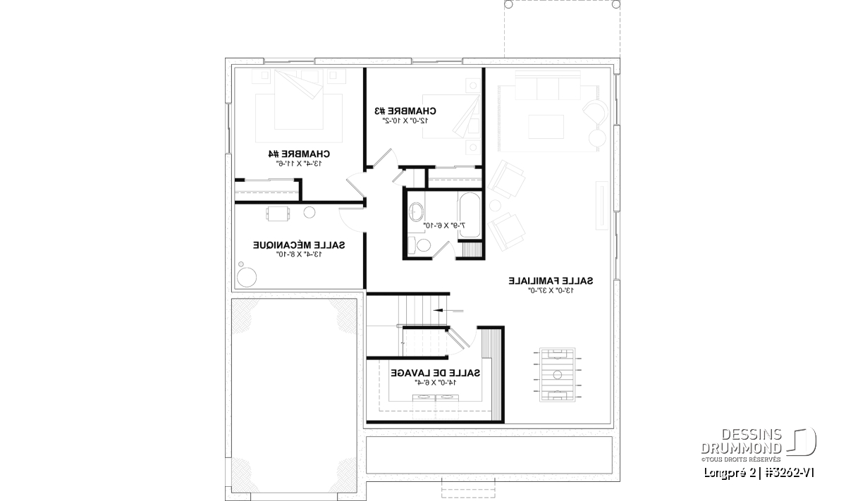 *Si vous souhaitez acheter le plan du sous-sol aménagé, tel que présenté sur la page de ce plan, veuillez sélectionner cette option dans le panier d'achat, dans la section "Sélectionner votre fondation". Si vous ne sélectionnez pas cette option, vous recevrez le sous-sol non fini, sans frais additionnel.
