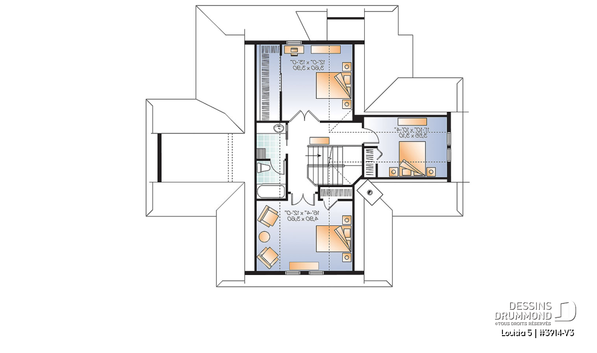 Étage - Plan de chalet champêtre 4 chambres, bord de l'eau, abri moustiquaire, foyer, grande terrasse, buanderie - Louisia 5