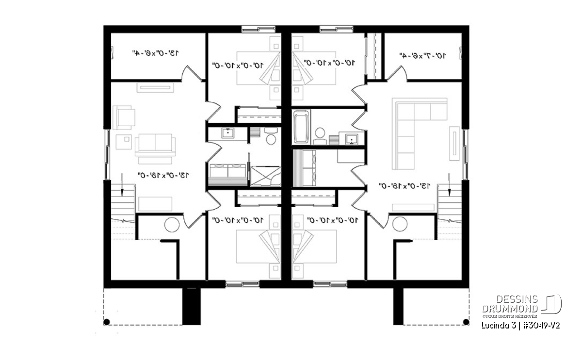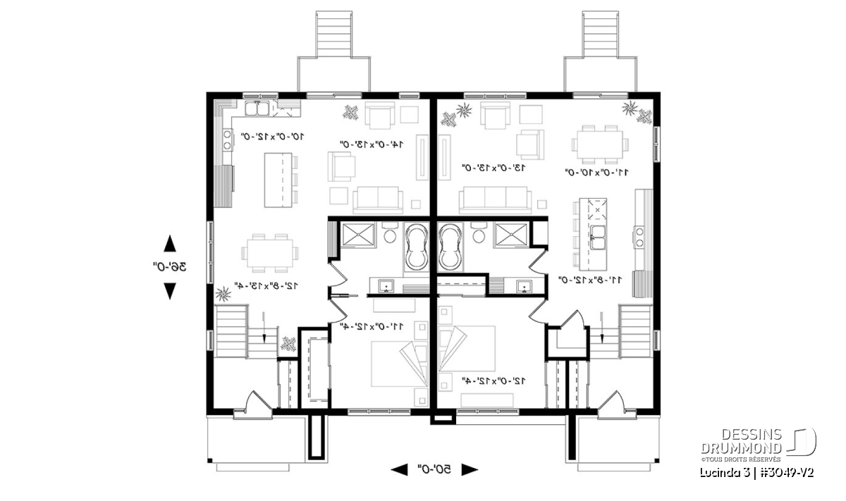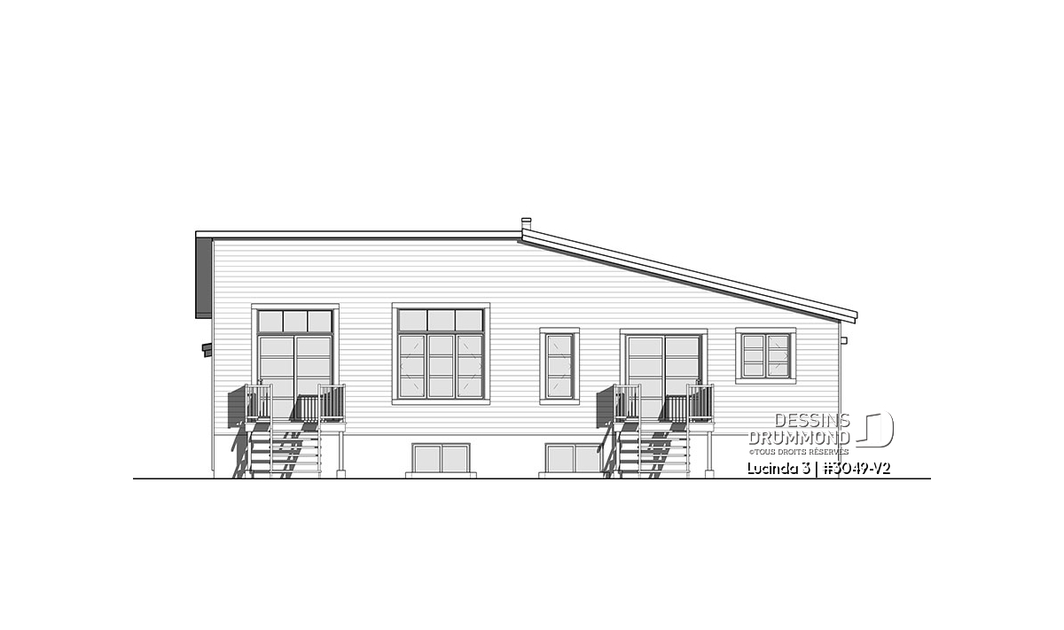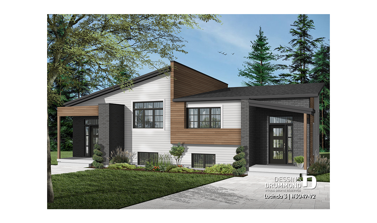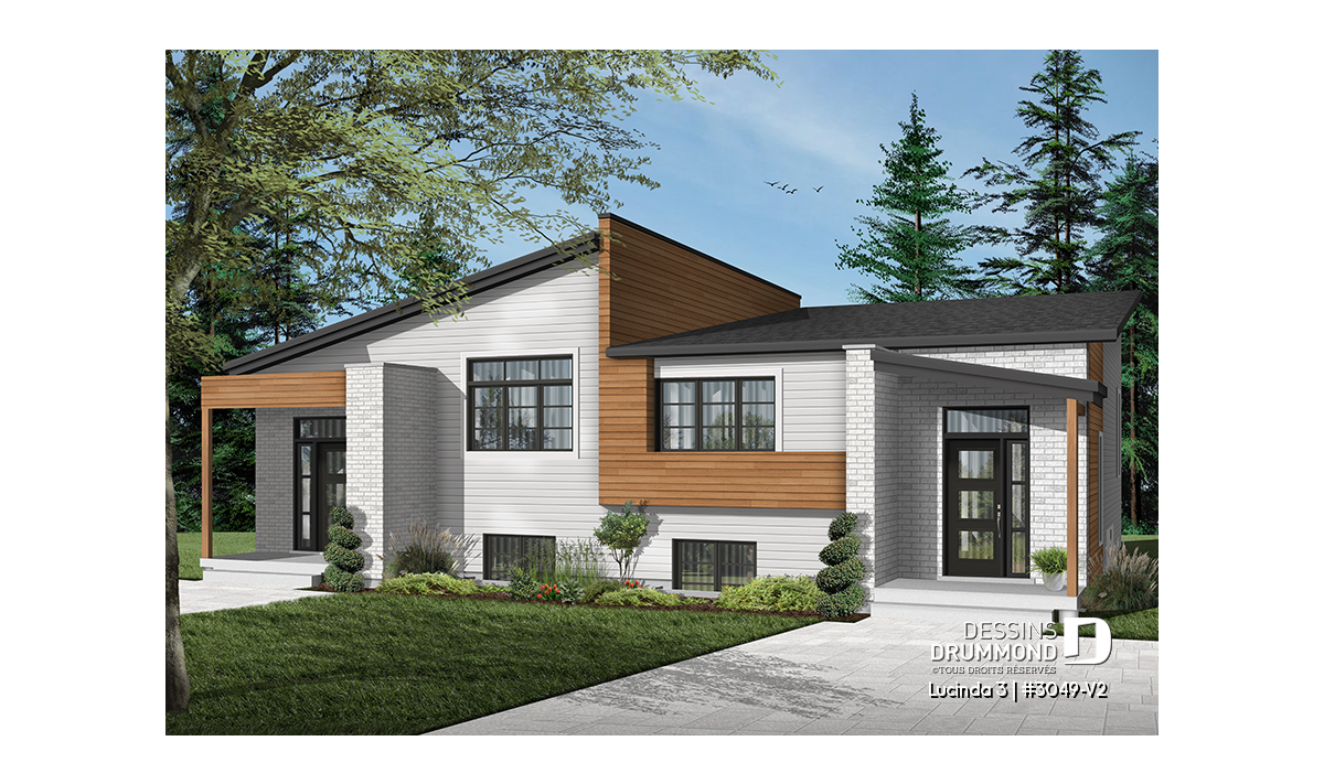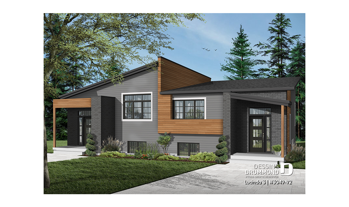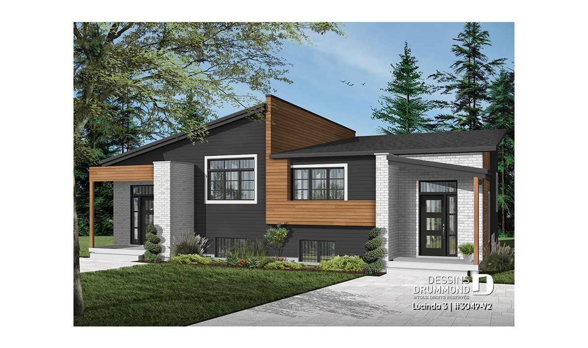 Conçu à partir du plan jumelé #3049-V1 dont la popularité est toujours au rendez-vous, ce modèle version propose une approche davantage moderne pour l'extérieur.