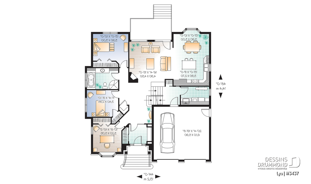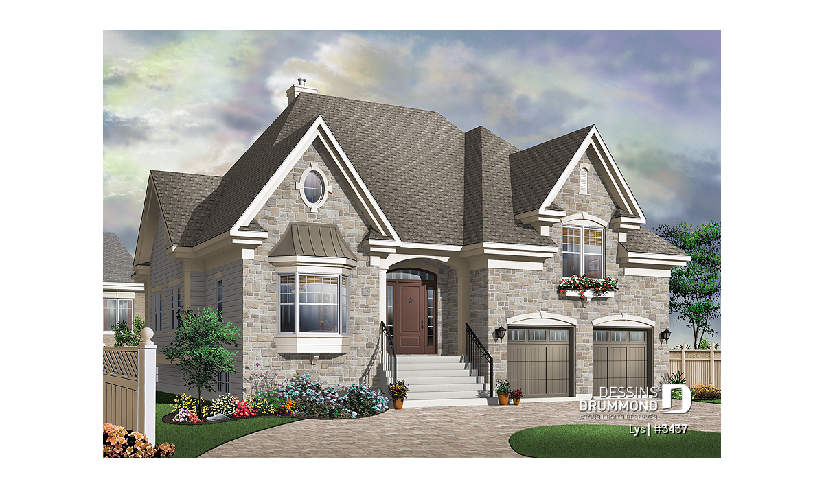 Le plan de maison LYS (#3437) propose un aménagement intérieur à la fois original et parfaitement aligné avec une demande de plus en plus marquée pour des maisons de style manoir, dotées d’un garage double et d’un format plus accommodant, tant sur le plan fonctionnel qu’esthétique. Son architecture d’inspiration européenne séduit par son équilibre, son élégance et son organisation intérieure ingénieuse.