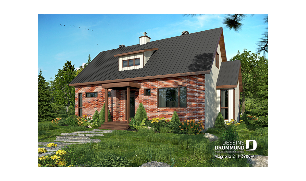Maison ou chalet au look tendance fermette moderne, avec façade en brique rouge!