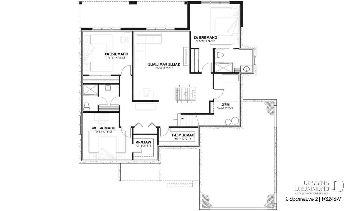 L’un des éléments phares de ce plan est le sous-sol walkout. Celui-ci peut être entièrement aménagé dès la construction, laissé non fini pour servir de rangement ou pour conserver un potentiel futur, ou encore être complété plus tard selon l’évolution de vos besoins. Cette flexibilité permet à la maison de grandir avec vous : ajout de chambres, salle familiale, aire de jeux, gym, ou même un logement supplémentaire.