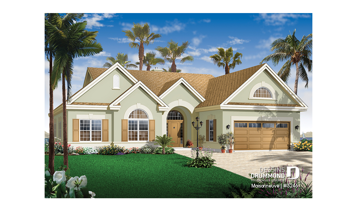 Magnifique plain-pied style Floridien avec garage double, 3 chambres et beaucoup de lumière naturelle!