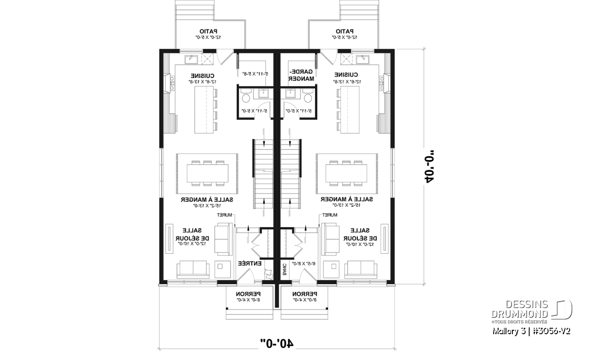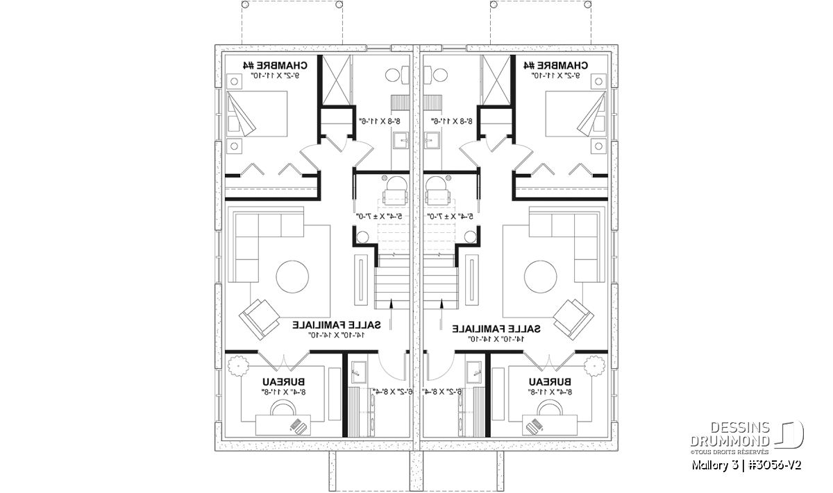 Elle propose un espace habitable d'approx. 2420 pi.ca. *aménagé sur 3 planchers et ce, pour chacune des unités. De plus, les 2 unités sont des répliques "mirroir", donc offre les mêmes espaces, mais inversés.