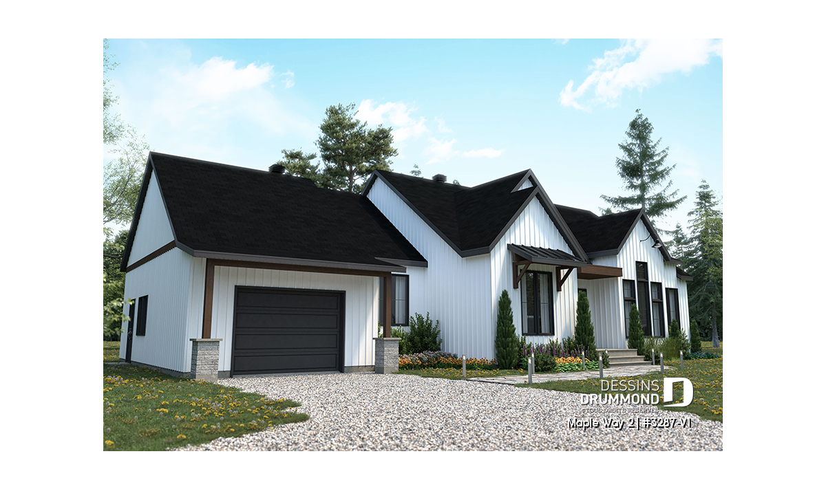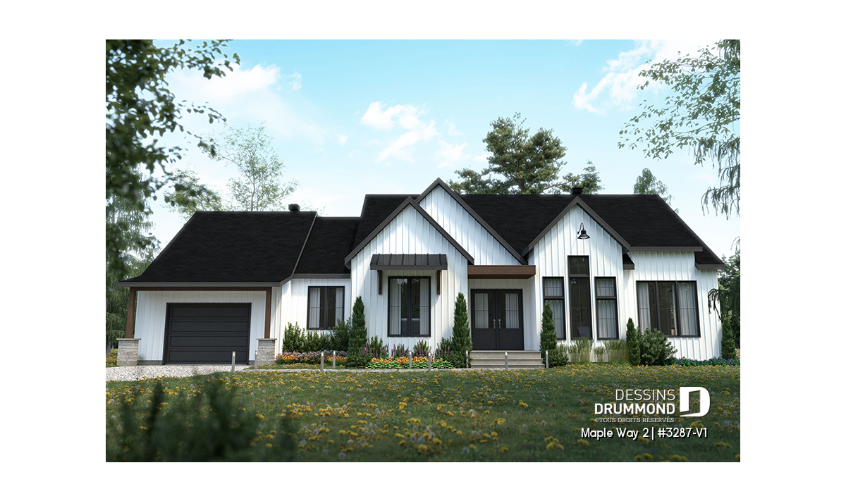 Le plan de maison Maple Way 2 (#3287-V1), conçu par Dessins Drummond, séduit par son style Farmhouse tendance, son aménagement réfléchi et sa grande polyvalence, idéale pour les familles d’aujourd’hui qui recherchent à la fois confort, luminosité et fonctionnalité. Offrant 1 953 pi² de surface habitable, ce plan propose une configuration fluide où chaque espace a été conçu pour simplifier le quotidien, sans compromis sur l’esthétique.