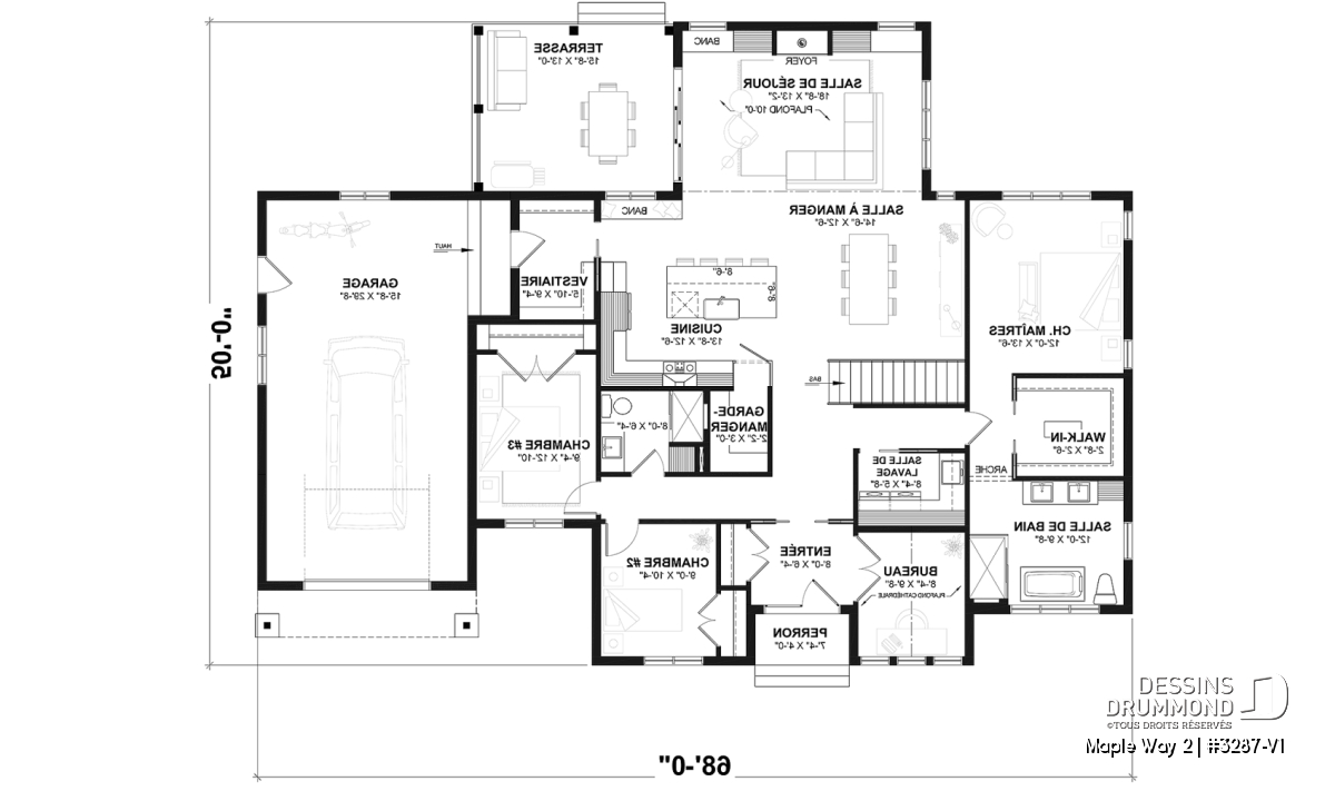 Rez-de-chaussée - Modèle de maison farmhouse moderne plain-pied, 3 chambres, garage, conçu pour Ludovick Bourgeois - Maple Way 2