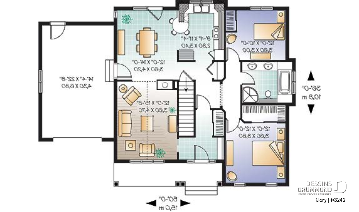 | Largeur | 50'0" | Profondeur | 36'0" |
