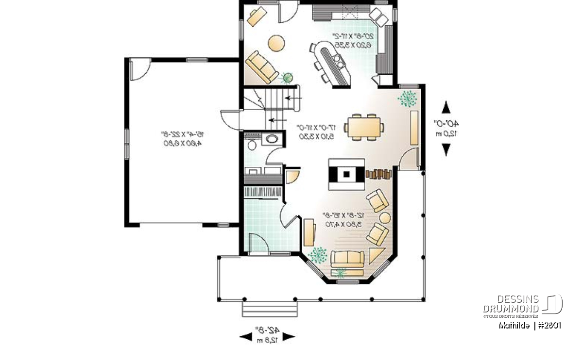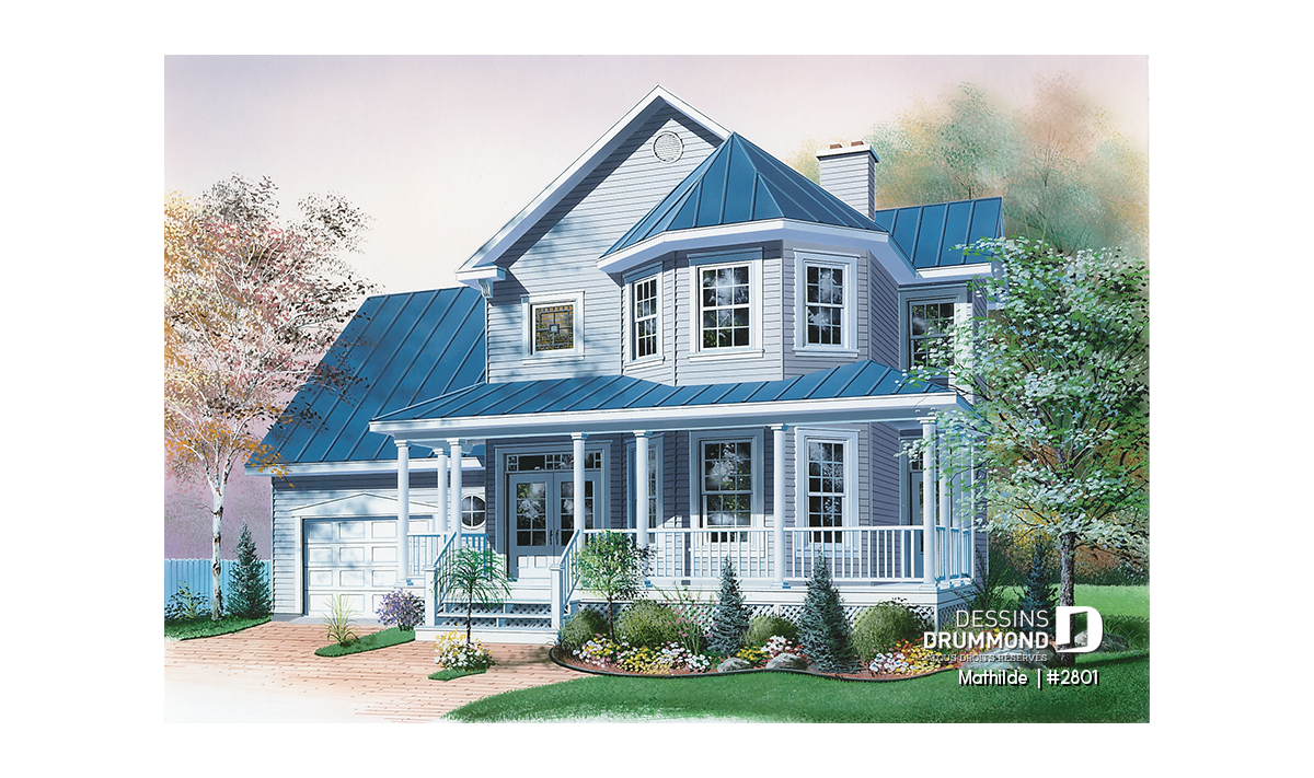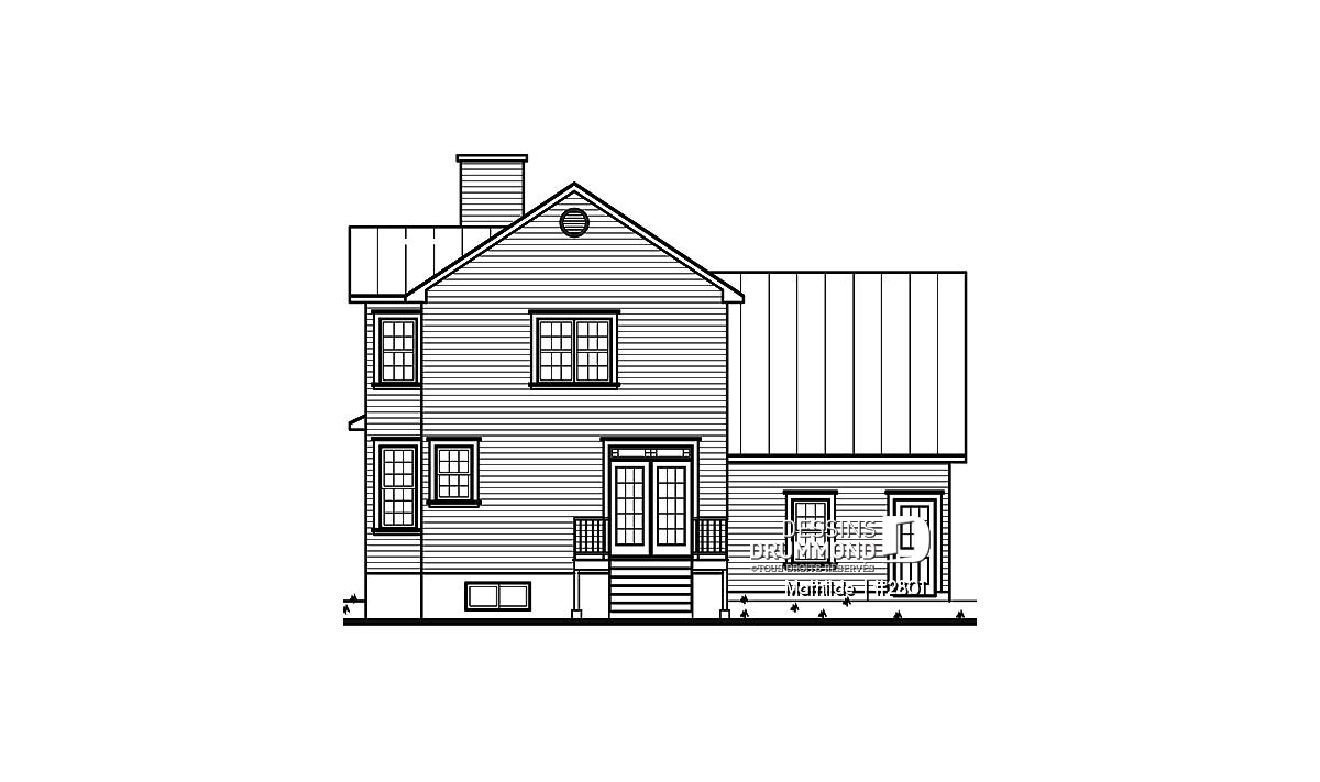 Ici, rien n’échappe au concepteur. Une grande galerie avant et latérale assure l’accès à la porte principale et à une porte secondaire donnant sur la salle à manger. Un volume avant en angle et sur deux étages procure charme et lumière tant à la salle de séjour qu’à la chambre des maîtres. Un garage suffisamment imposant et aménagé à palier permet l’obtention d’un espace boni attrayant et accessible à mi-chemin entre les deux planchers.