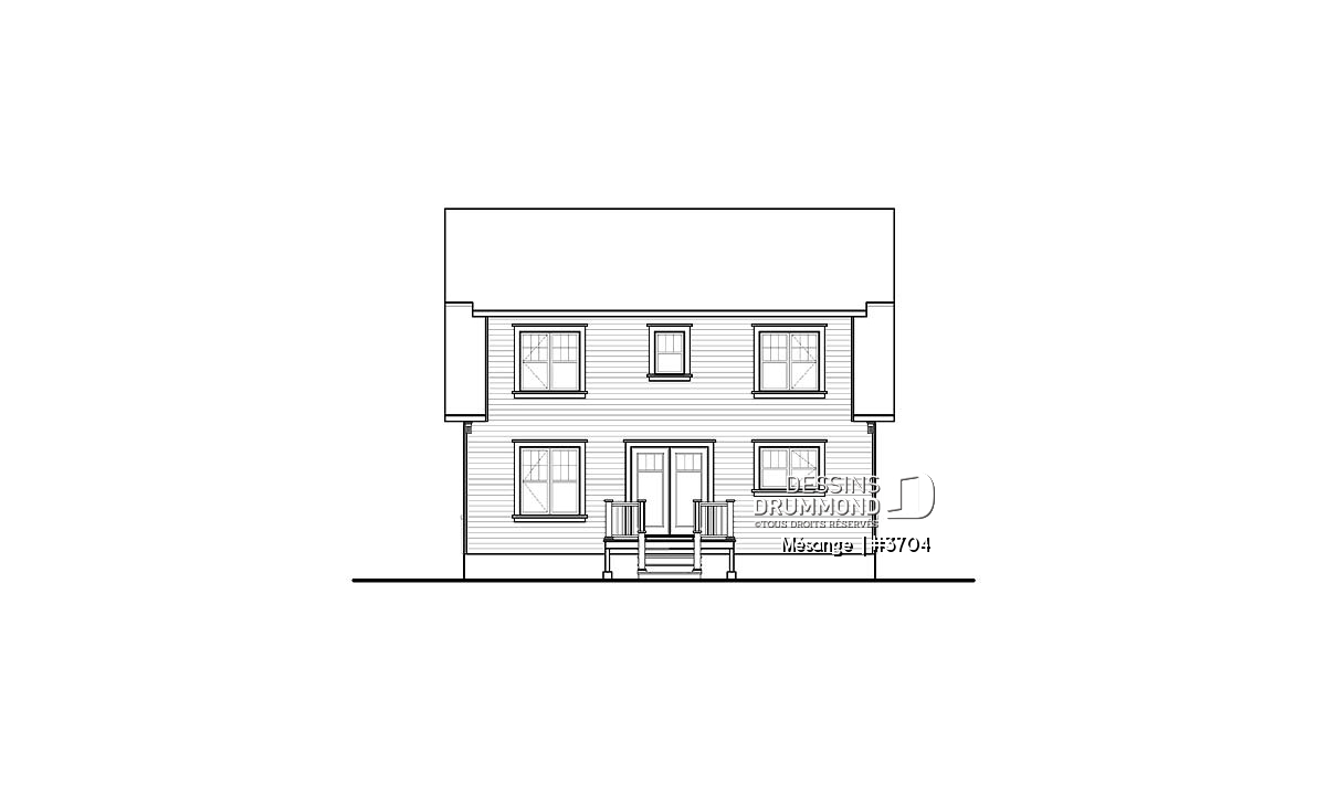 Vue avant - MODÈLE DE BASE - Plan de maison avec 4 chambres, bureau, style Cape Cod, belle galerie avant - Mésange