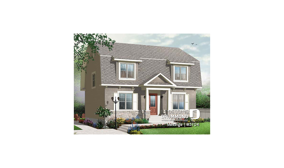Plan de maison style Cape Cod avec 4 chambres à l'étage dont la suite des parents!