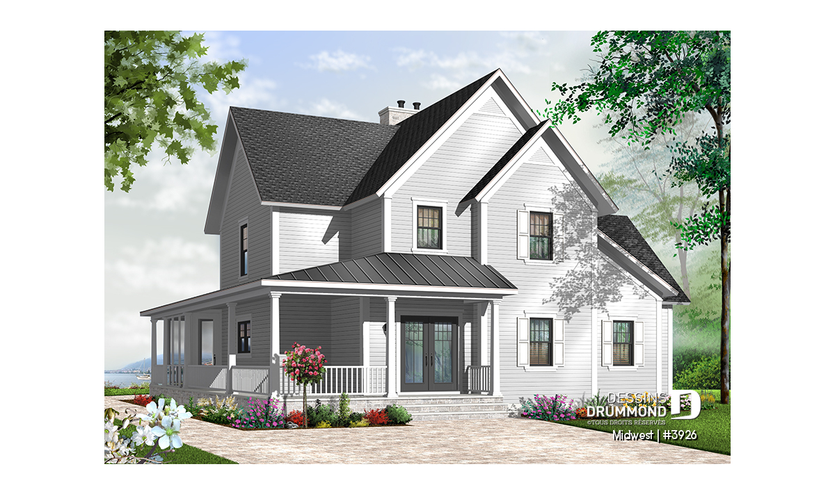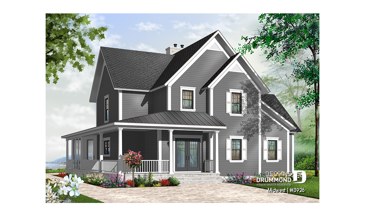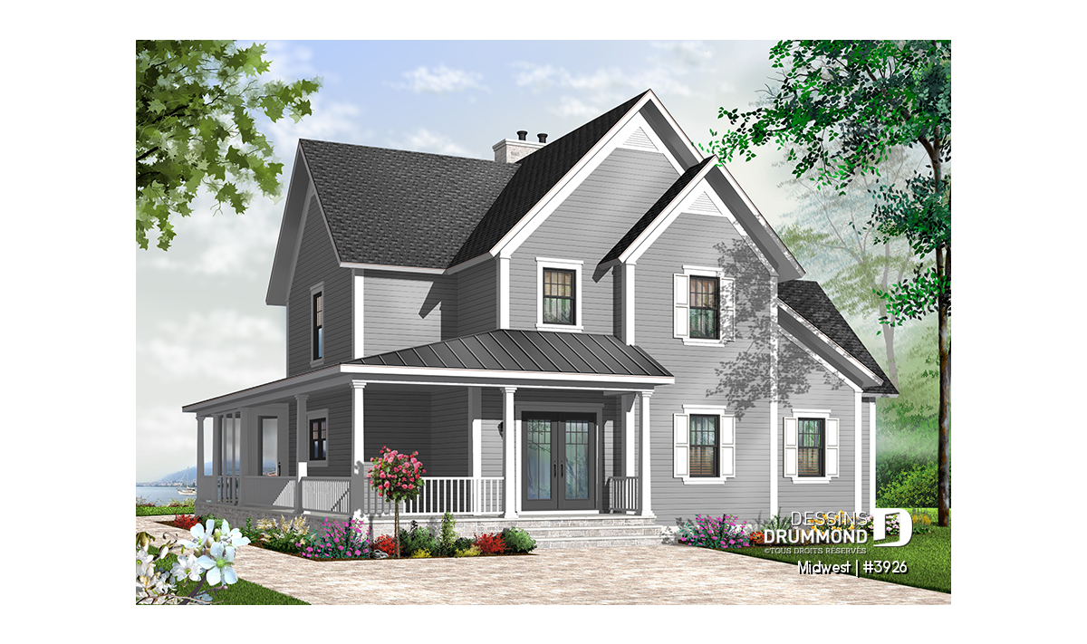 Voici une autre conception de Dessins Drummond, maître incontesté de la maison pour site panoramique, à aménager idéalement aux abords d’un lac, d’une rivière ou pourquoi pas d’un club de golf.