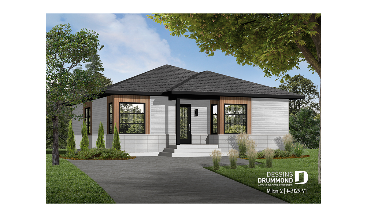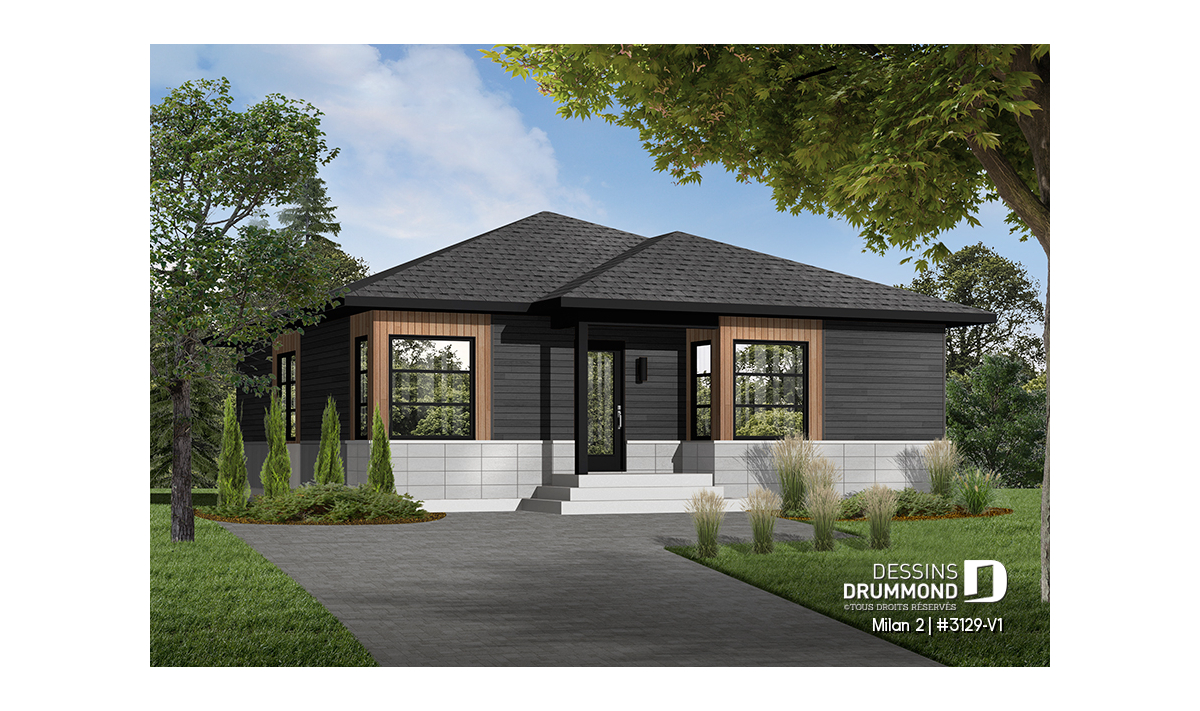 En raison des demandes récurrentes rattachées au plain-pied 3129 et concernant les différents points suivants : plus de pi2 habitables, une porte-patio donnant sur l’arrière et un espace salle à manger hors cuisine mais toujours dans un secteur activités entièrement ouvert, Dessins Drummond suggère ce modèle version pour lequel l’entreprise est convaincue de répondre aux attentes des différents demandeurs.