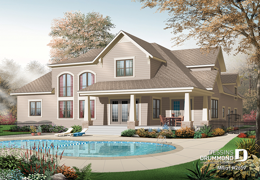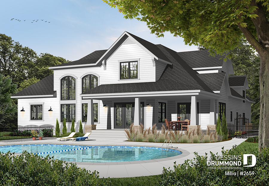 Maison farmhouse 4 à 5 chambres, garage triple, grand patio couvert, 2 foyers, suite des parents