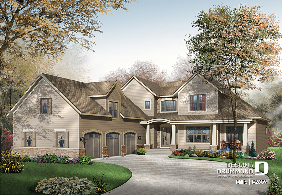 Les estimations de maison incluent les revêtements tels qu'illustrés sur notre site. Les maisons modestes sont calculées avec un revêtement de clin régulier en vinyle. Pour les maisons régulières et plus complexes, nous ajoutons des montants approximatifs (au pi.ca.) : clin de fibrociment, de cèdre, maçonnerie légère ou régulière (partiel ou total), board & batten, bois, et autres. Les poutres de bois illustrées sur l'extérieure de nos maisons sont aussi incluses dans le coût, mais elles sont «capées » et non en bois massif. Il en est de même pour les portes d'entrée et portes de garage. Elles sont incluses aux estimations, mais de qualité standard. Concernant les revêtements de maçonnerie : on propose, sur plusieurs modèles, une touche de brique-pierre comme on en retrouve chez la plupart des fabricants de brique (faire attention de ne pas confondre avec de la pierre naturelle, rarement sur nos illustrations et beaucoup plus dispendieuse). NOTE : Si vous souhaitez utiliser un revêtement de maçonnerie plutôt qu'un clin comme illustré sur le plan que vous avez choisi, svp nous contacter car vous aurez besoin de faire modifier le plan en conséquence.