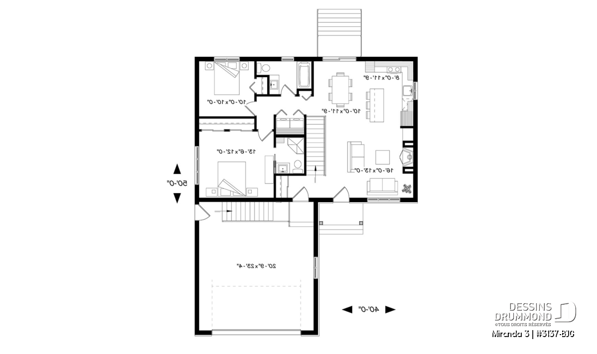 Largeur 40'0" Profondeur 50'0"
