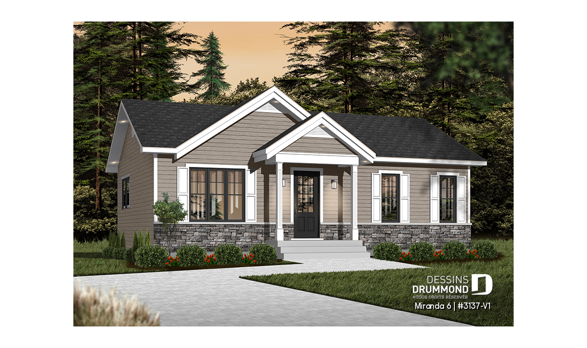 Le plan de maison MIRANDA 6 (#3137-V1) incarne parfaitement l’équilibre entre accessibilité, confort et intelligence d’aménagement. De style Farmhouse chaleureux, ce plain-pied économique a été conçu pour répondre aux besoins réels des familles d’aujourd’hui, tout en offrant un excellent potentiel d’évolution à long terme.