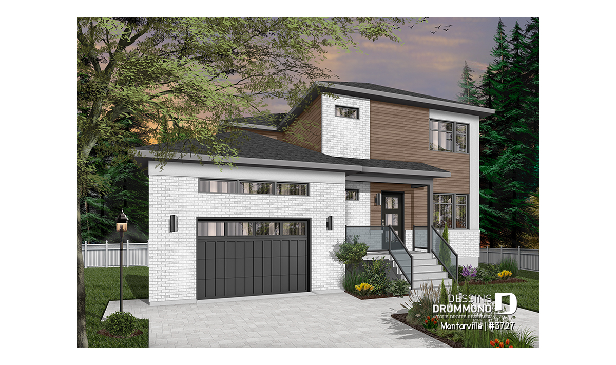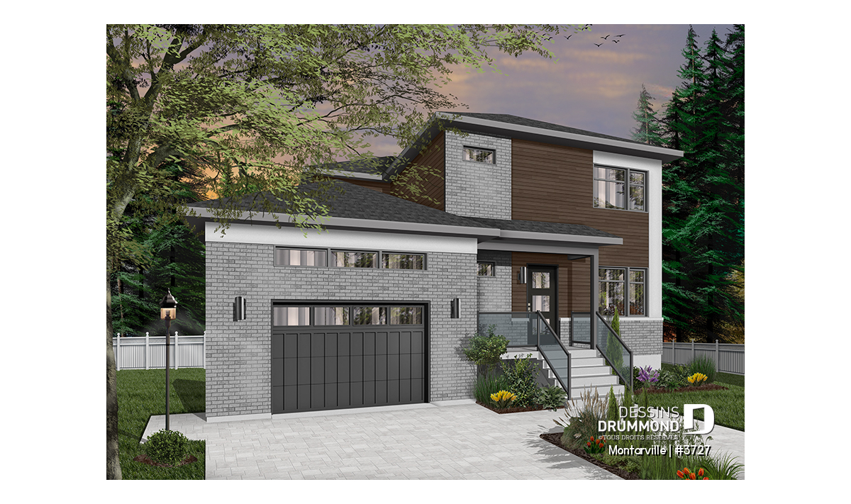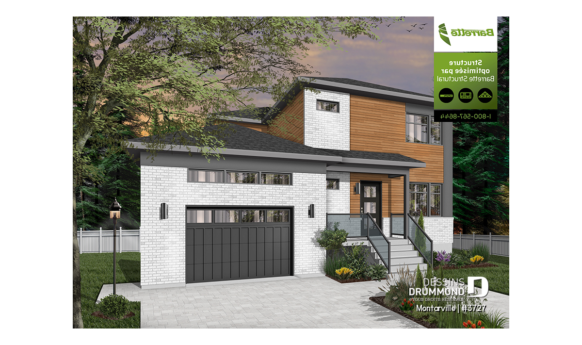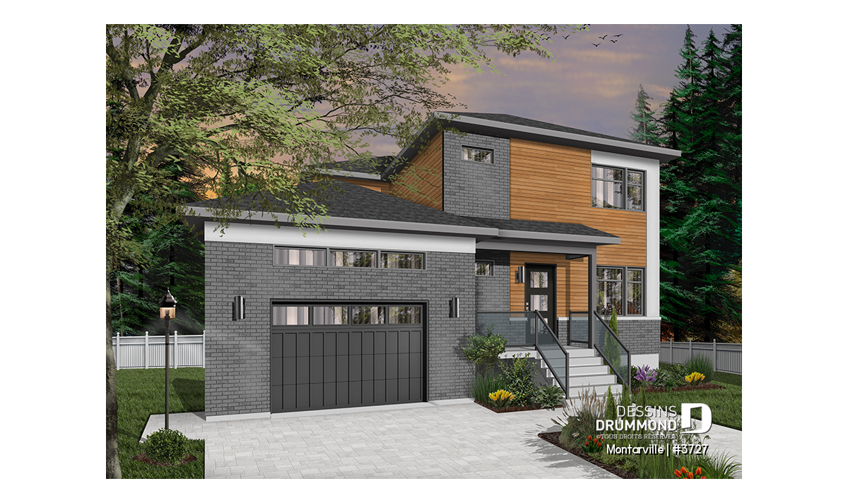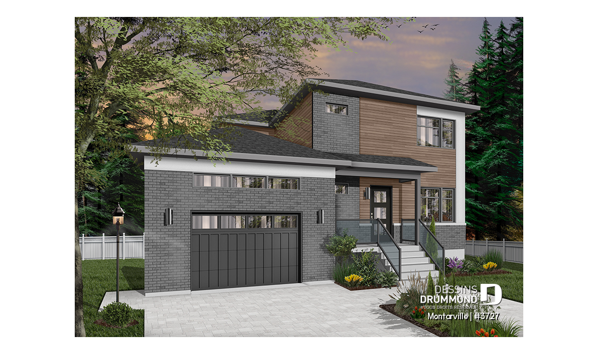 Découvrez ce nouveau plan de maison moderne avec garage # 3727, aussi nommé MONTARVILLE, et vous apprécierez tous les espaces et commodités qu’il vous offre avec ses 2110 pieds carrés de surfaces aménagées. De style contemporain, cette maison à étage offre de 3 à 4 chambres, ainsi qu’un espace à aire ouverte aux airs communs, au rez-de-chaussée.