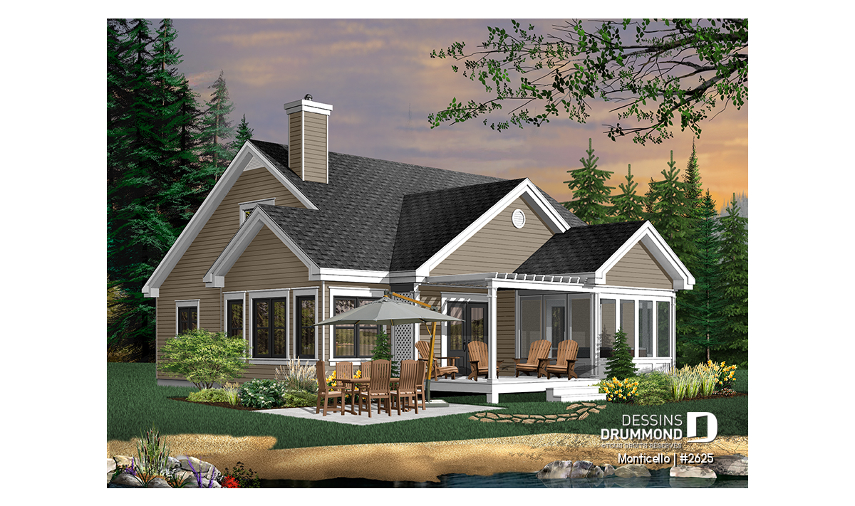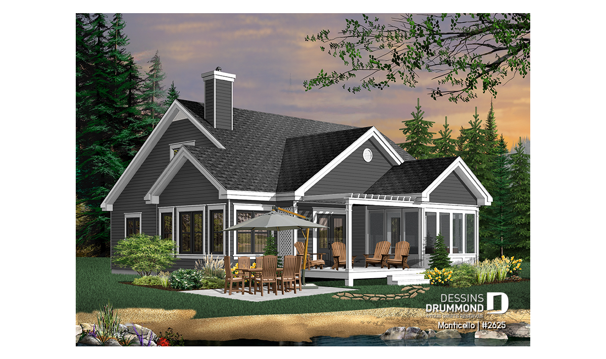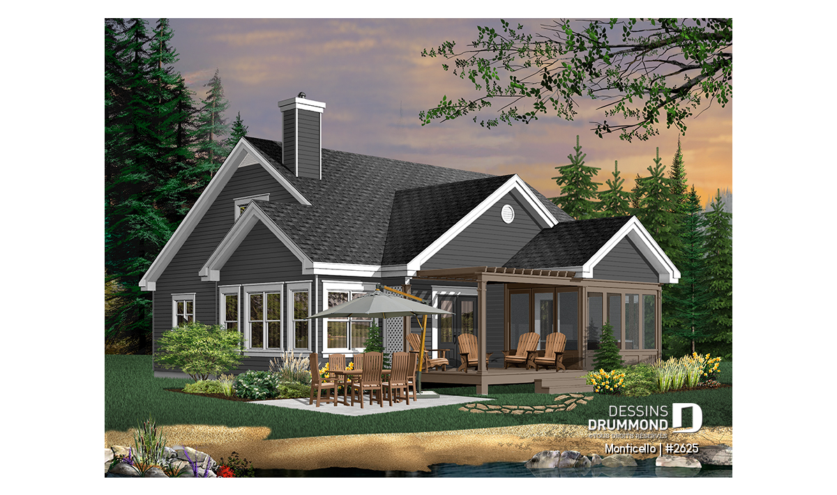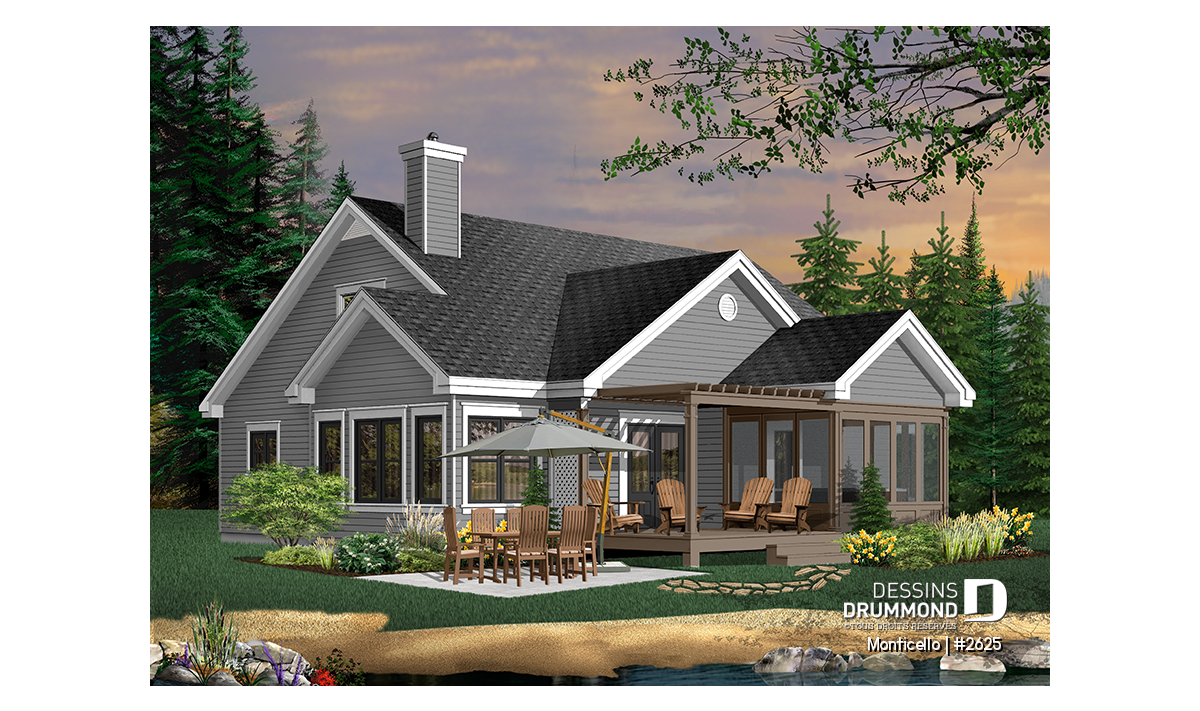 Pergola, bain tourbillon en moustiquaire avec accès de l''extérieur ou de la chambre des maîtres, perron avant abrité, fenestration abondante, treillis décoratif en bois.