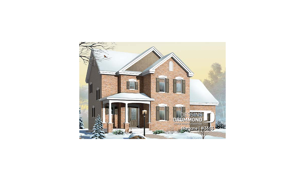 Maison issue de la collection Hiver 2006 des maisons neuves de Dessins Drummond, aménagées dans le magazine Plans de Maisons du Québec, cette maison représente bien les nouvelles tendances avec ses lignes simplifiées privilégiant davantage l’espace intérieur que l’artifice extérieur.