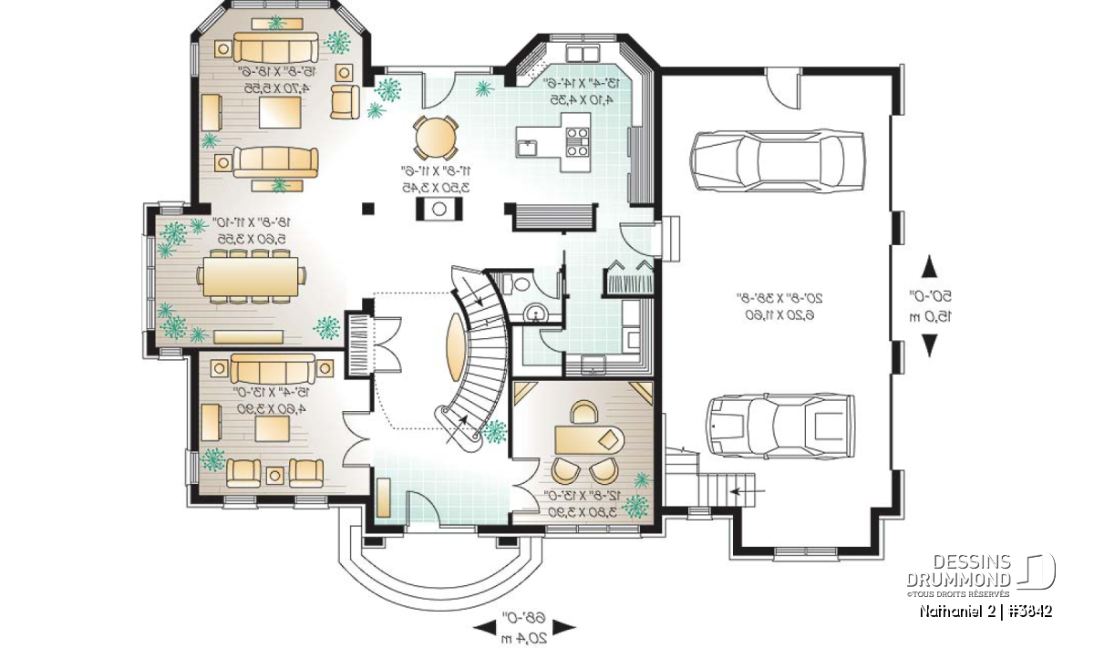 Plan de maison luxueuse, garage triple, 2 suites des maîtres, grand espace boni, bureau, salle télé, foyer