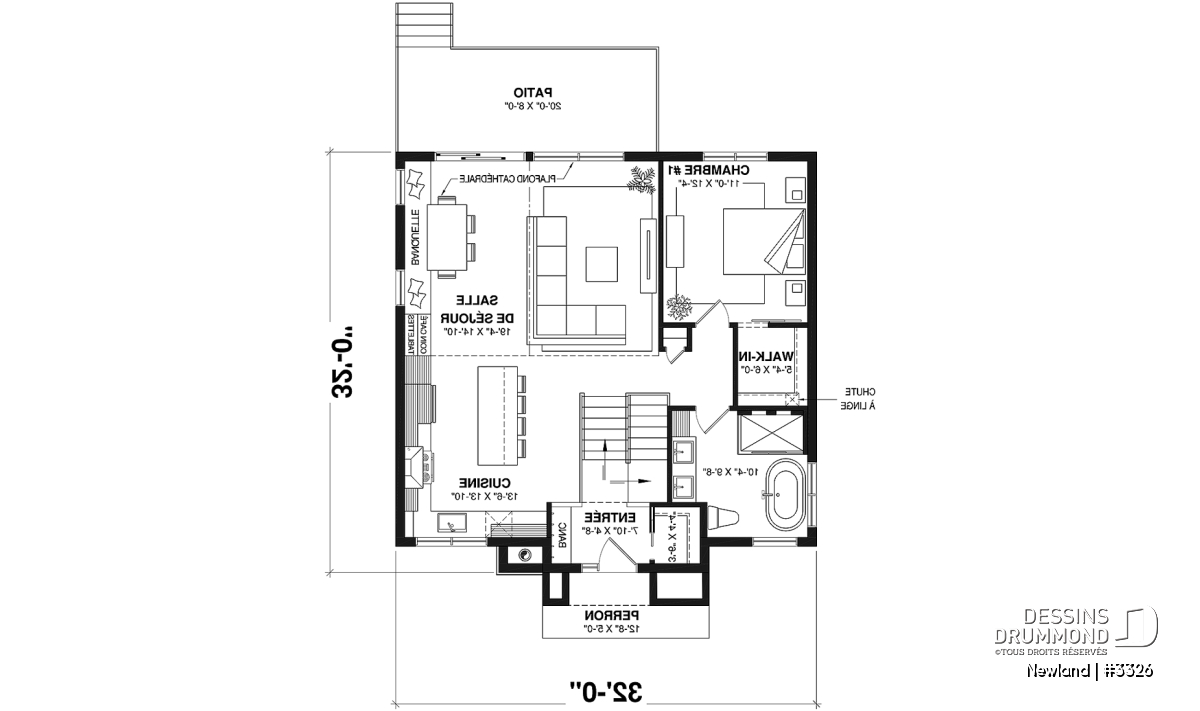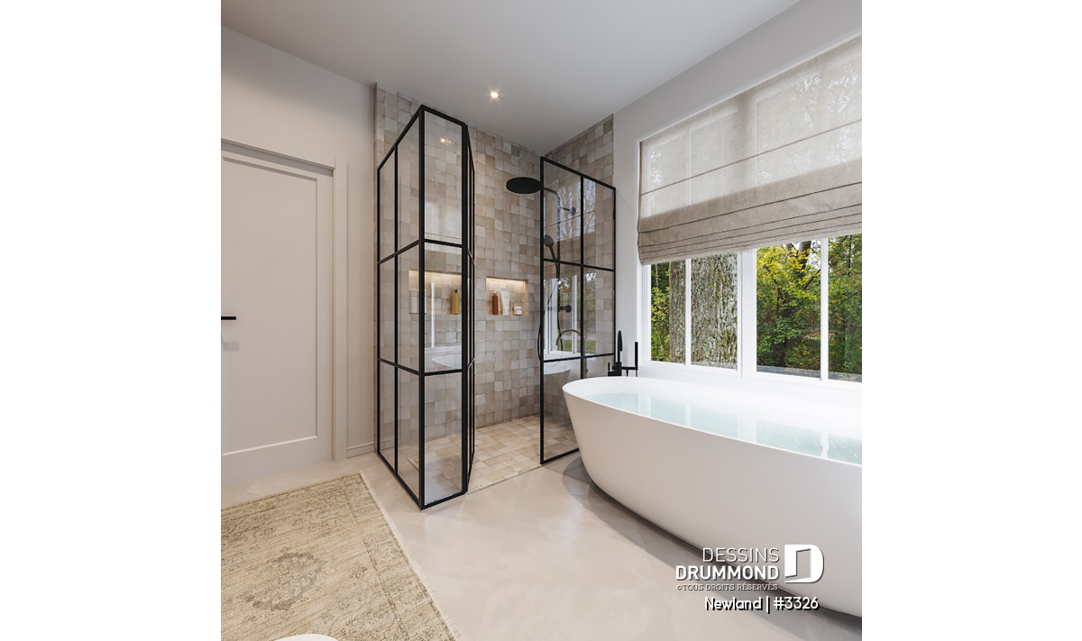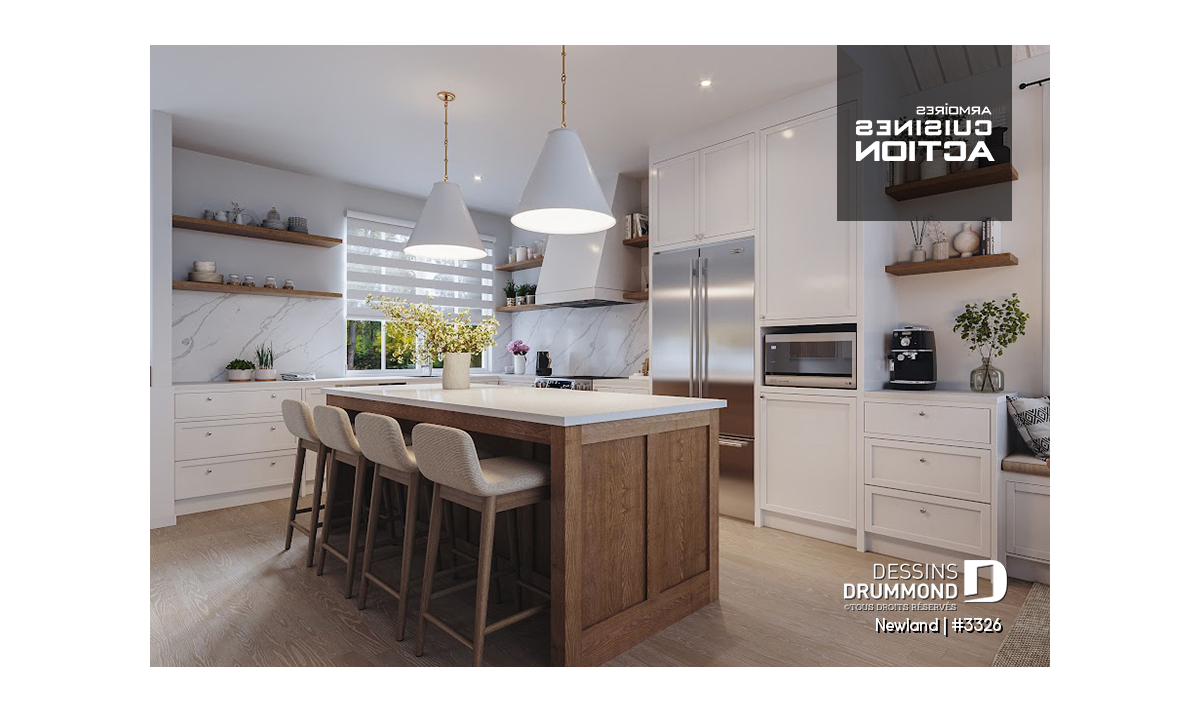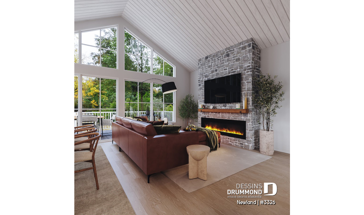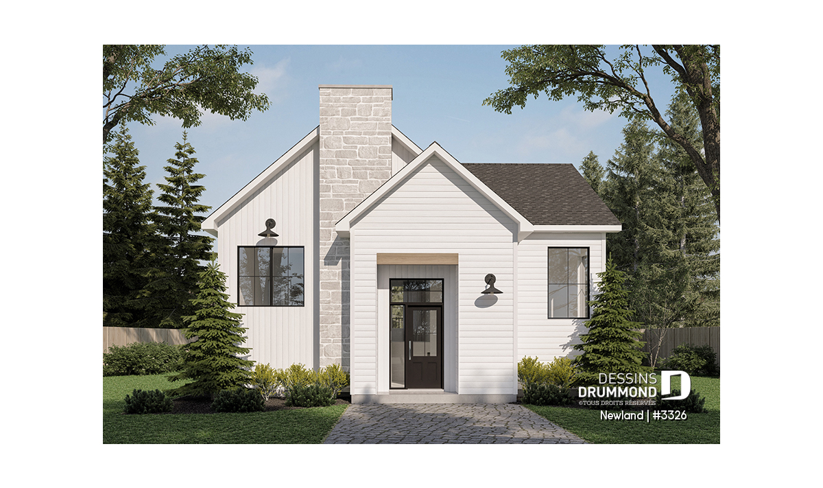 Le plan de maison NEWLAND (plan #3326) propose 1970 pi.ca. aménagés sur deux planchers. Bien qu'offrant de prime abord des lignes et une architecture simple, la présence de pierre en façade ainsi que de bois à l'entrée avant extérieure, sauront en charmer plus d'un(e)! Et que dire de l'arrière de la maison... WOW!!! Entrons-y donc...