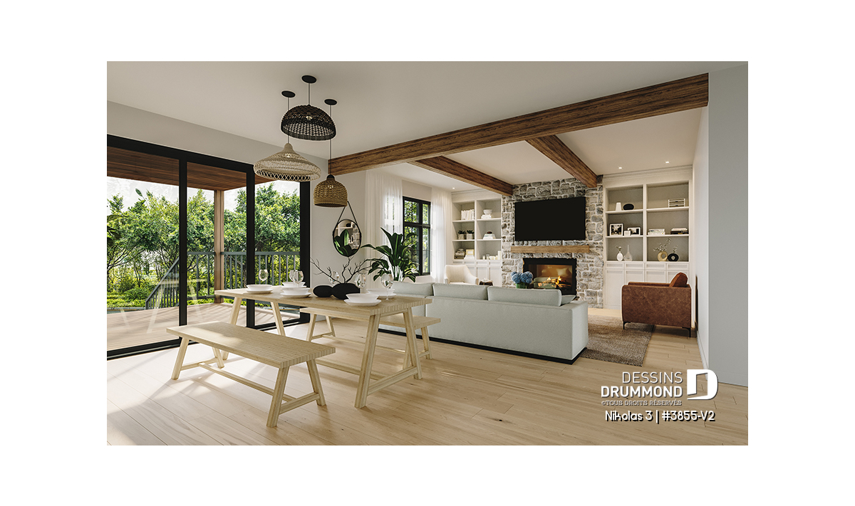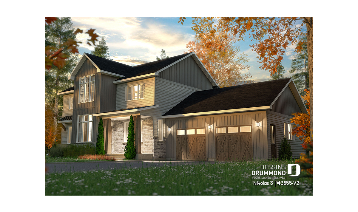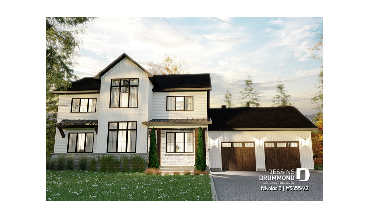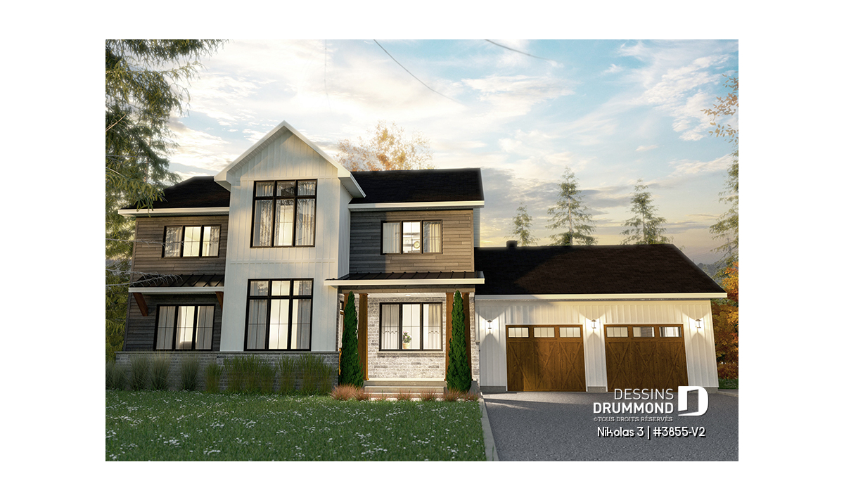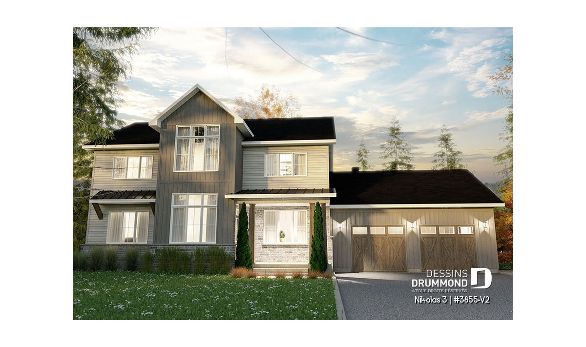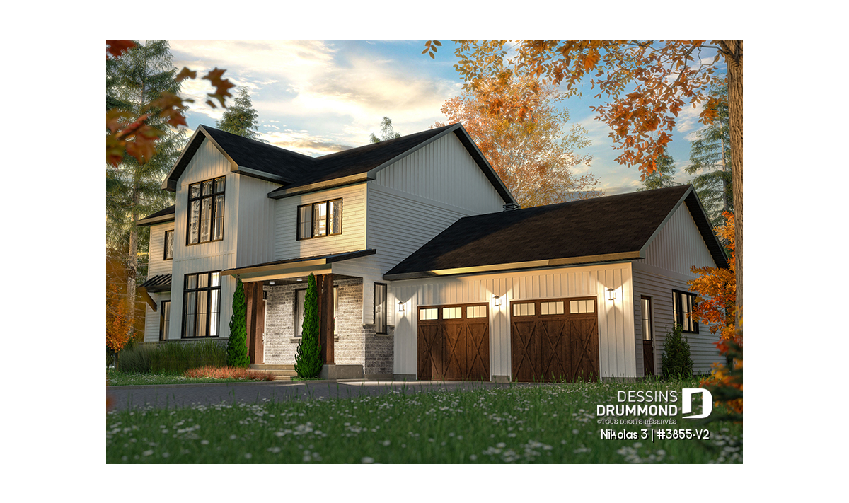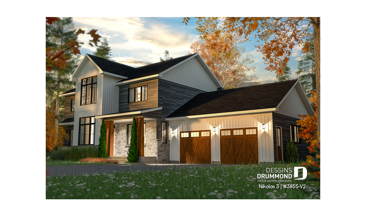 Superbe plan de maison contemporain et champêtre à la fois.