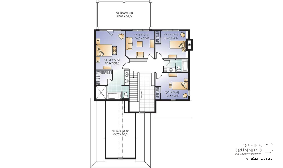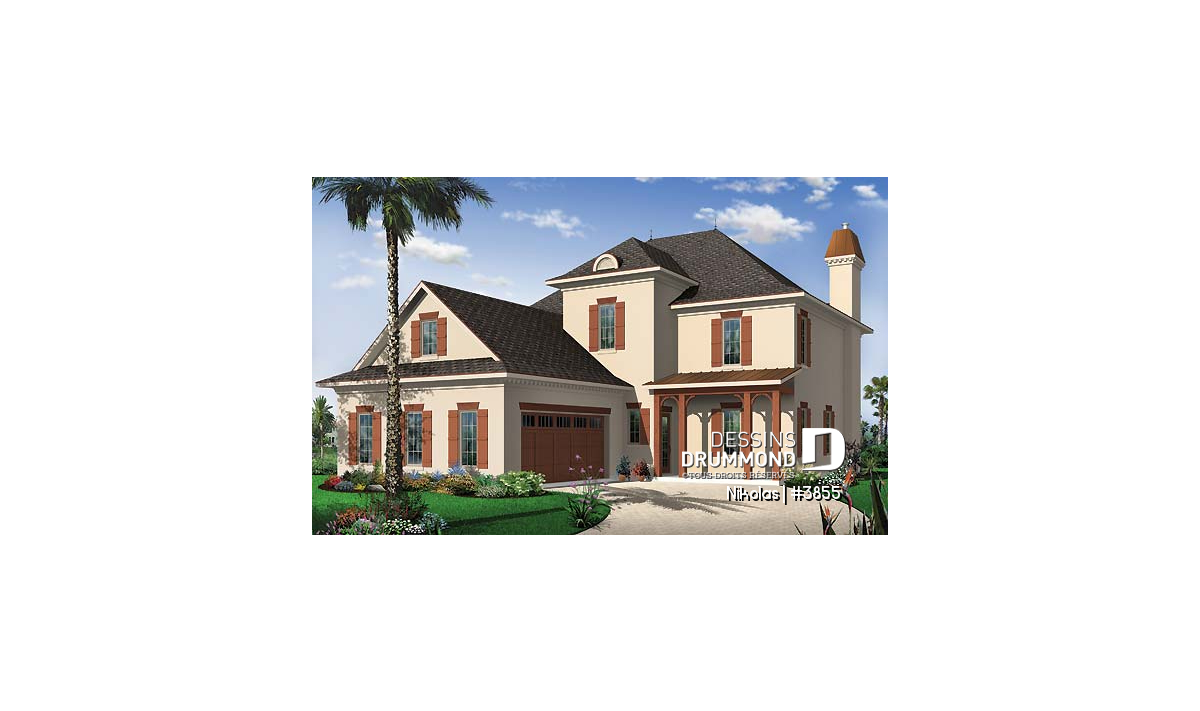 Entrée avant dégagée sur deux étages soit 20 pi de hauteur. Plafond à 9 pi et espace bureau prévus au rez-de-chaussée. Secteur cuisine, salle à manger et salle de séjour entièrement orienté sur l'arrière. Terrasse arrière couverte par un grand balcon accessible de la chambre des maîtres. Salle de jeux ou quatrième chambre aménagée à l'étage. Espace rangement prévu au-dessus du garage.